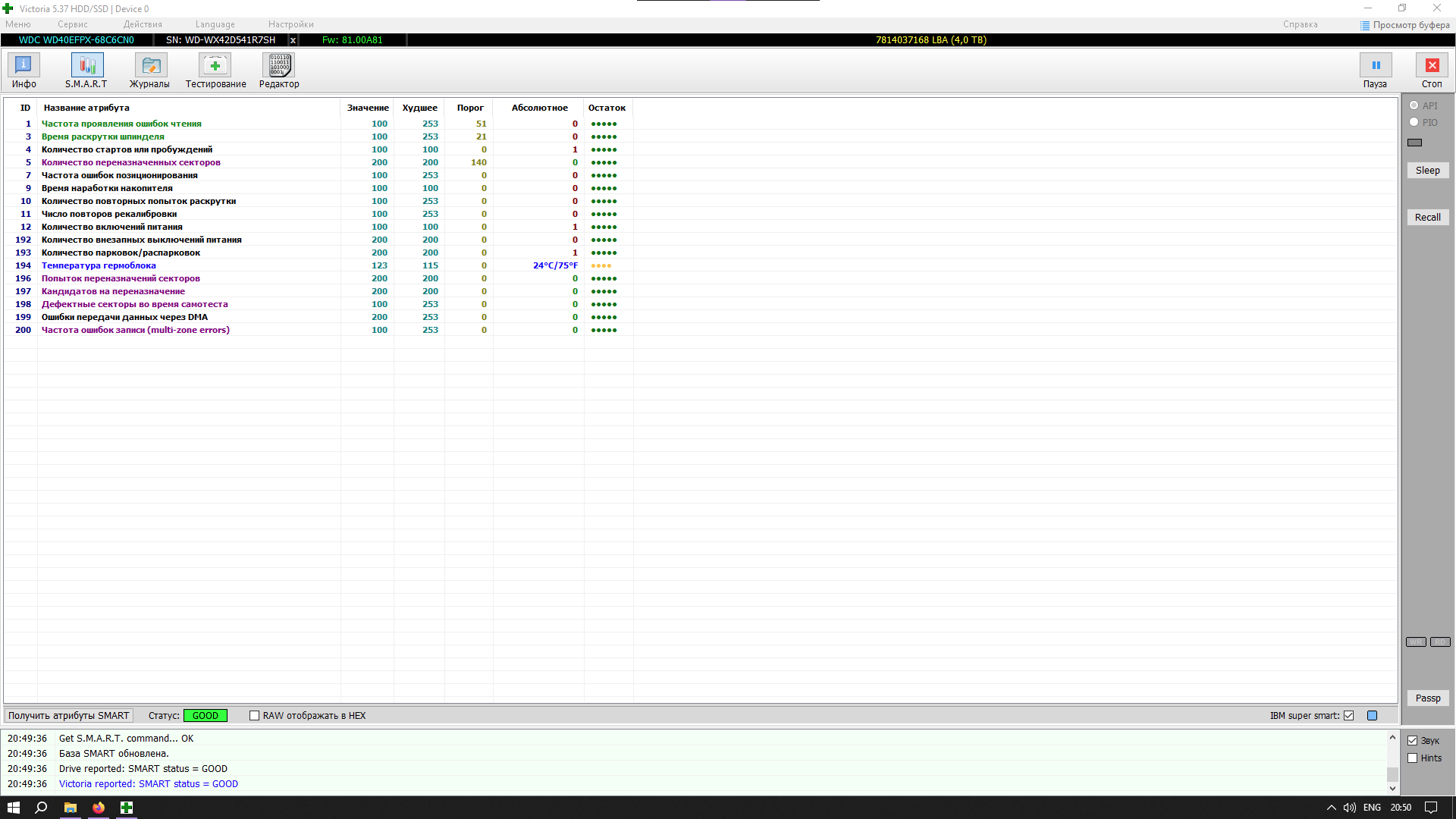 > Жесткий диск Western Digital WD Red 4 ТБ WD40EFRX Короче я отменил - в отзывах много пишут, что юзанные продаван продаёт. Получается жизни нет в 2025 году?