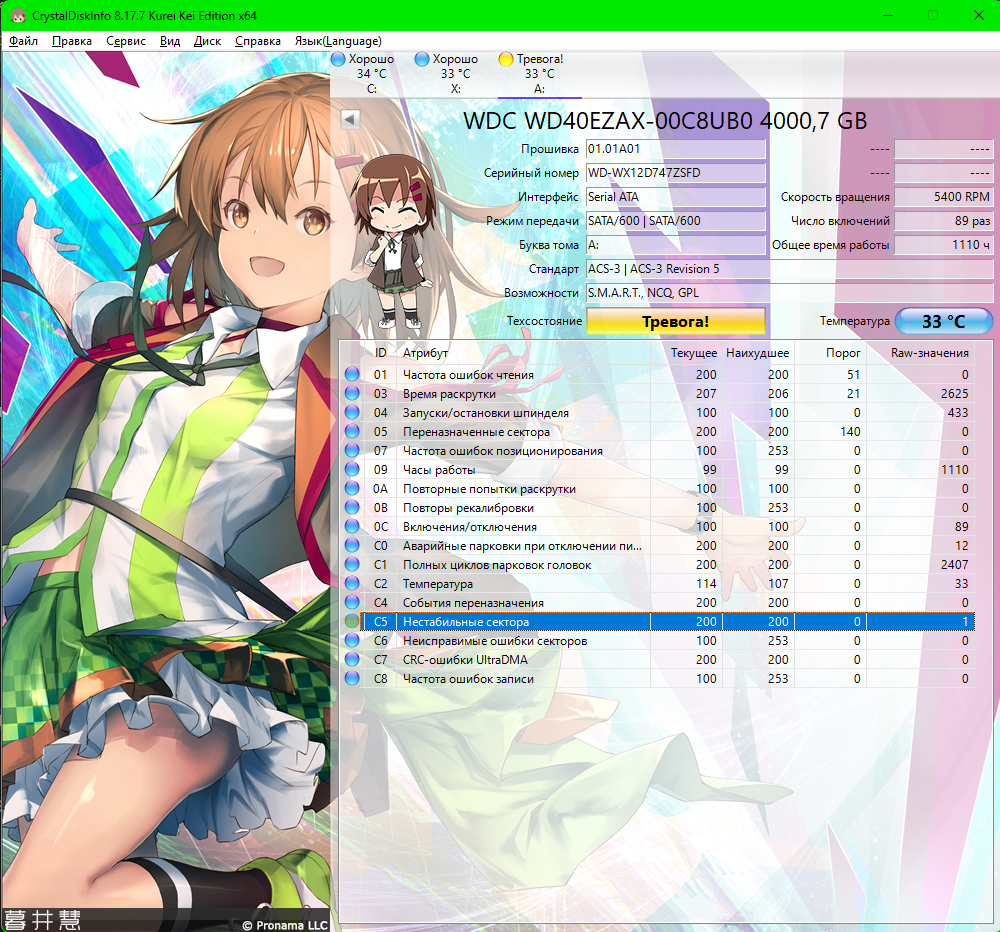 >>7409258 У меня на Тошибе 6Тб, стал после гарантийки срать нестабильными секторами, заменил его, когда их стало за 40 штук спустя полгода после появлении первого.