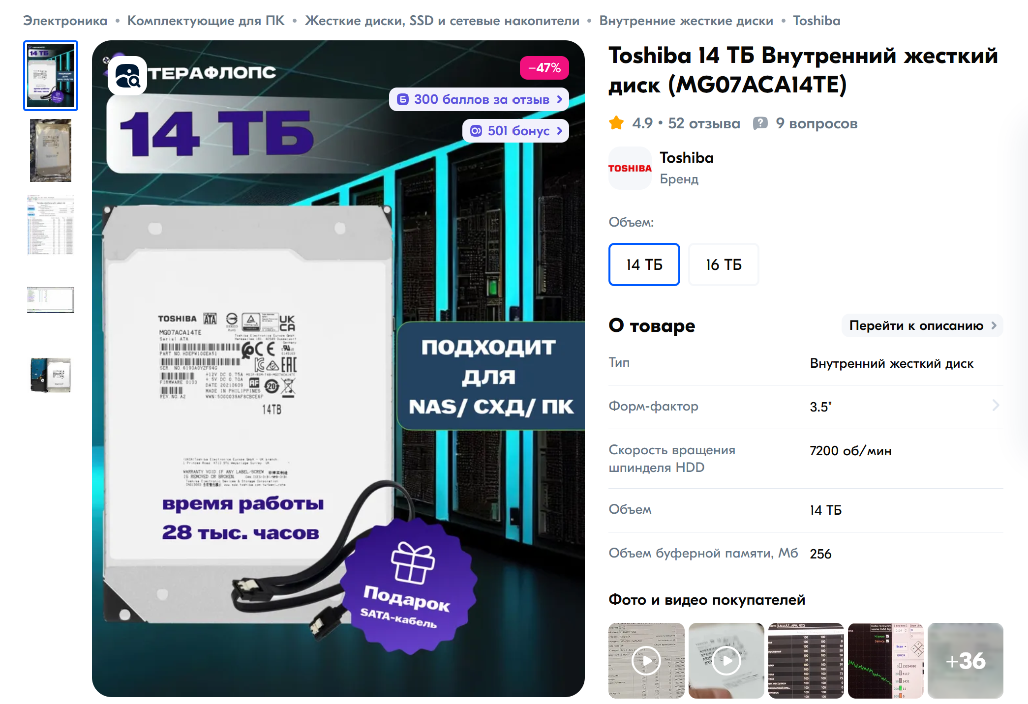 Toshiba Enterprise Capacity и WD Ultrastar — 1,7 рублей за гигабайт.