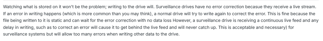 Остается только протестировать на поверхность и скорость. Если все норм то сойдет в качестве хранилища медиа. Единственное я не знаю действительно ли диски для видеонаблюдения игнорируют ошибки или это только при работе с камерами и спецоборудованием.