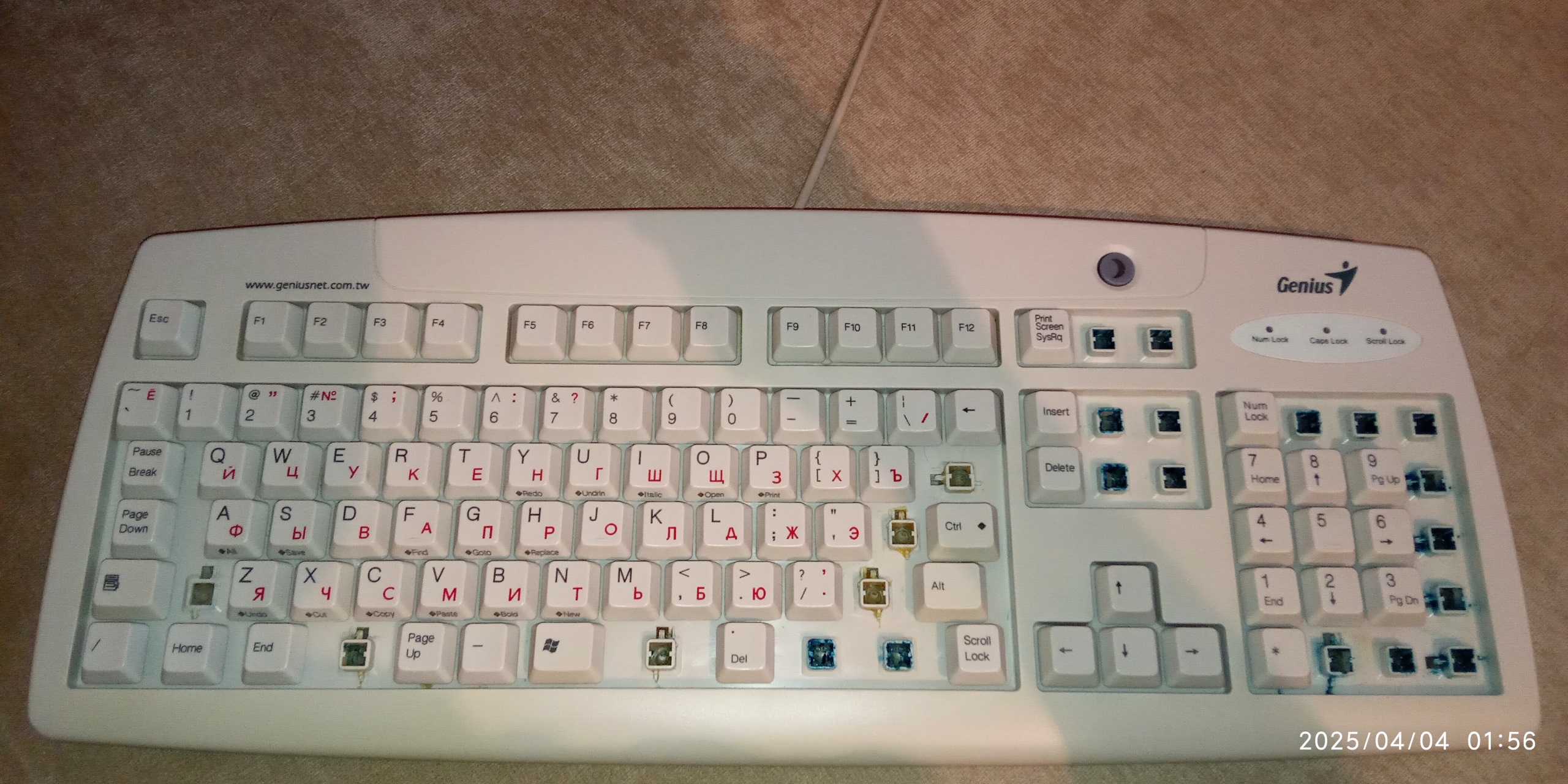 Кстати, ещё до смены раскладки, но уже после чистки и смазки K632, ле-маман потребовалось написать эссе, клавиатура ноутбука её почему-то не устроила, возможно размером и неудобным положением рук, дал ей обслуженный Джиниус, это её клава на самом деле, нампад отполирован больше нежели W, так она была довольна, заметила, что клавиатура стала тише, а это еще клавиши со стабилизаторами побрякивали. Дай ей говно с твоих пиков, тряска будет запредельная, когда какая-нибудь клавиша заест или не пропечатается.