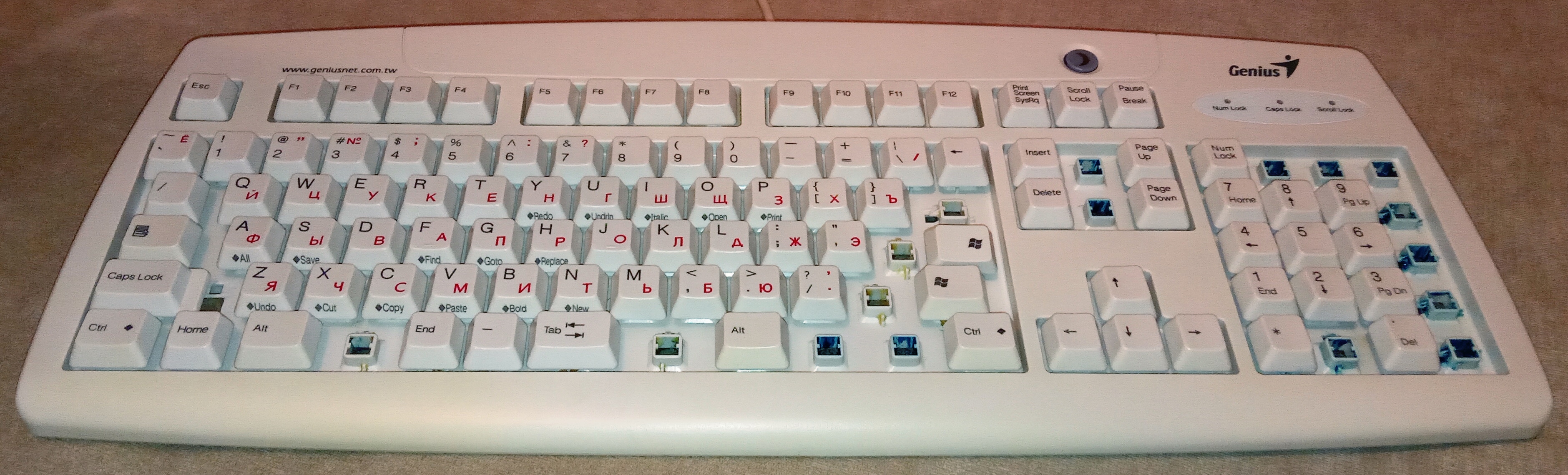Genius KB-06XE — они просто укоротили юбку кейкапа на половину. Нет, ну а хуле? Справедливости ради, ход клавиши тоже уменьшили.