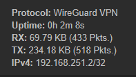 Что сделано на некротике: - Интерфейс Wireguard вынесен в отдельный лист VPN. В принципе в том виде как сейчас работало и пока он был в листе WAN, но у меня очко свербит почему-то. Правил в фаерволе пока нет (и возможно в этом и проблема). - Прописан маршрут: чтобы попасть в сеть 192.168.10.0/24 используй gateway 192.168.251.2