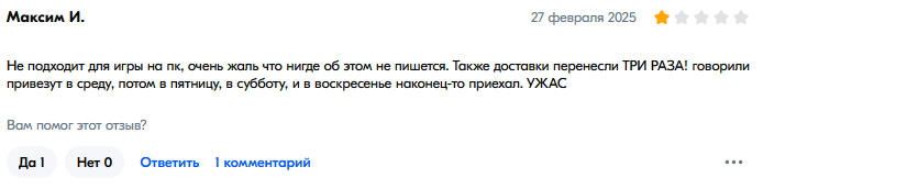 >>7377692 Я кстати там писал и там же писал, что отменил нахуй все заказы геймсира (не проблема геймсира), потому что продаваны, походу ждали пока наберется заказов, чтобы потом оптом закупить чуть дешевле у производителя из-за чего две недели только сборка шла, которая так и не свершилась.