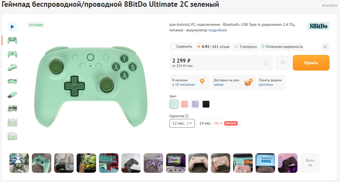>>7397144 Стоит. Можешь на озоне еще глянуть, у 2С с боксораскладкой есть еще неплохие расцветки, более спокойные. У меня много падов, есть даже 8bitdo 2C, но Bluetooth-версии. Крестовина там отличная, кнопки плавные и при этом четкие, бамперы хоть и на свитчах, но не сильно громкие и жесткие. Короче, верный выбор.