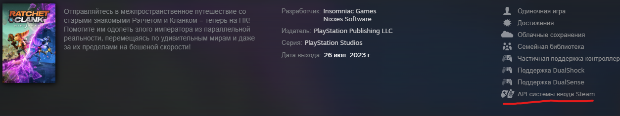Бля, какие же сони долбоебы. В Рэтчете и Кланке указана поддержка Steam API, которую эти ебанько сломали. Играл на дуалсенсе по беспроводу, он, в какой-то момент разрядился и я решил доиграть на Z01x, который имеет раскладку и определяется как четвертый Dualshock. Все ок, но там кнопка select никак не используется, а карта открывается на кнопку скриншота. Можно было бы и потерпеть, но я решаю просто переназначить кнопки, благо написано же что Steam Api, а с ним 200+ видов геймпадов поддерживается. Но после включения поддержки игра перестает хоть как-то реагировать на нажатия. "Ну может дуалшоки нативно?" А нет. Сириевский боксопад тоже не работает. Перезапускаю игру с включенным Z01 в режиме проконтроллера. Вместо подсказок по кнопкам лишь иконки со знаком вопроса и такая же нулевая реакция на нажатия. Эти дауны, насколько я понял сломали Steam Api так что он работает только на Steam Deck и только с нативным управлением. При этом я играл в Atomfall без этой плашки и там все равно управление переназначается на манер Steam Api и кнопки отображал все верно. Как бы они в Stellar Blade не насрали, где тоже плашка имеется.