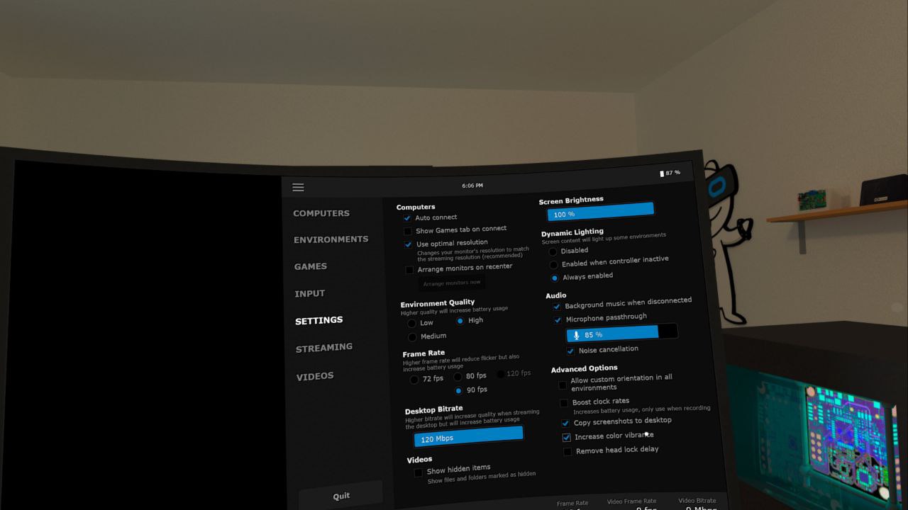 > Есть отличный, хоть и платный, VD У меня нету VD. Коксакерберг запретил мне его покупать. А спиратить его теперь анрил. Ну или просто пердольно. Так что VD в рашке это тоже пердолинг. При том что я использую vpn и казахстанский банковский долларовый счёт. Ну и плюс в унтурнетах пишут что alvr отстаёт от vd, зато более гибкие настройки есть. Надо короче мне всего пробовать.