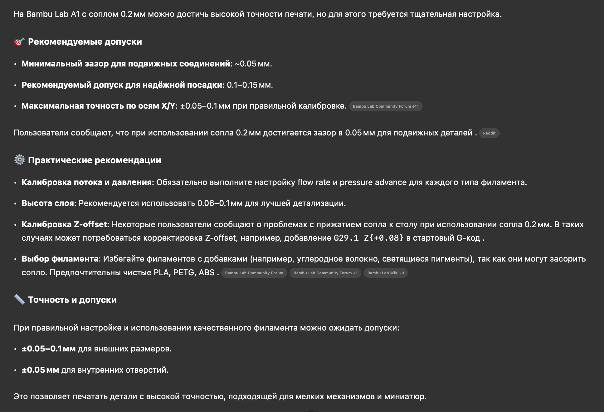 >>7401509 Допуск 0.1 мм можно получить на любом FDM-принтере, даже на сраном Эндероподобном дрыгостоле. 0.05 мм теоретически возможно, но многое зависит от качества филамента. На фотополимернике 0.02-0.05 мм как нехуй делать.