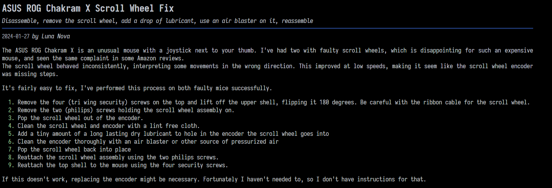 Купил мышку WLMOUSE Sword X, запакованная, точно новая. Всё замышись... кроме прокрутки. Вниз скроллит как положено такой дорогой мышке, плавно и без звука. А вот вверх скрежет и небольшое сопротивление. Буквально 10%, но это портит всё ощущение. Что-то можно сделать или только менять? Покупалась в другой стране.