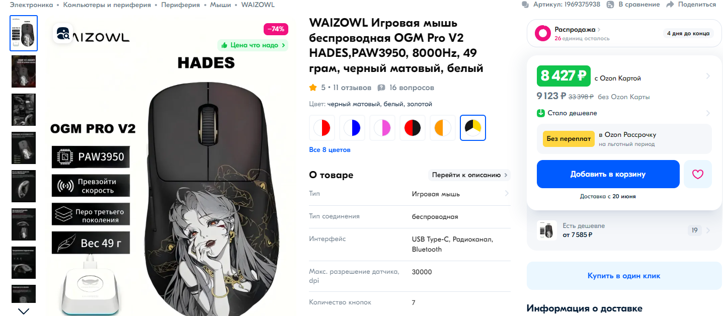 Года 3 пользуюсь проводной hyperx pulsefire haste и меня все устраивает, но в последнее время очень хочется попробовать беспровод, поэтому нужен ваш совет по выбору мыши в бюджете до 4-6к. Важно, чтобы она была легкой и относительно надежной, к сенсору особых требований нет. Хват пальцевой. Пытался сам что-то выбрать, но вариантов слишком много и глаза разбегаются.