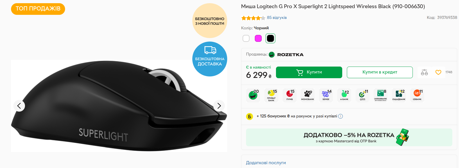 Анон, нужна беспроводная мышка с аккумулятором с лучшим сенсором за свои деньги. По габаритам и хвату у меня для ПК есть Logitech Pro x superlight. Бюджет 3-4т.р. Габариты желательно как у superlight, чтобы со встроенным аккумом и норм. сенсором. Вторую logitech не потяну по деньгам.