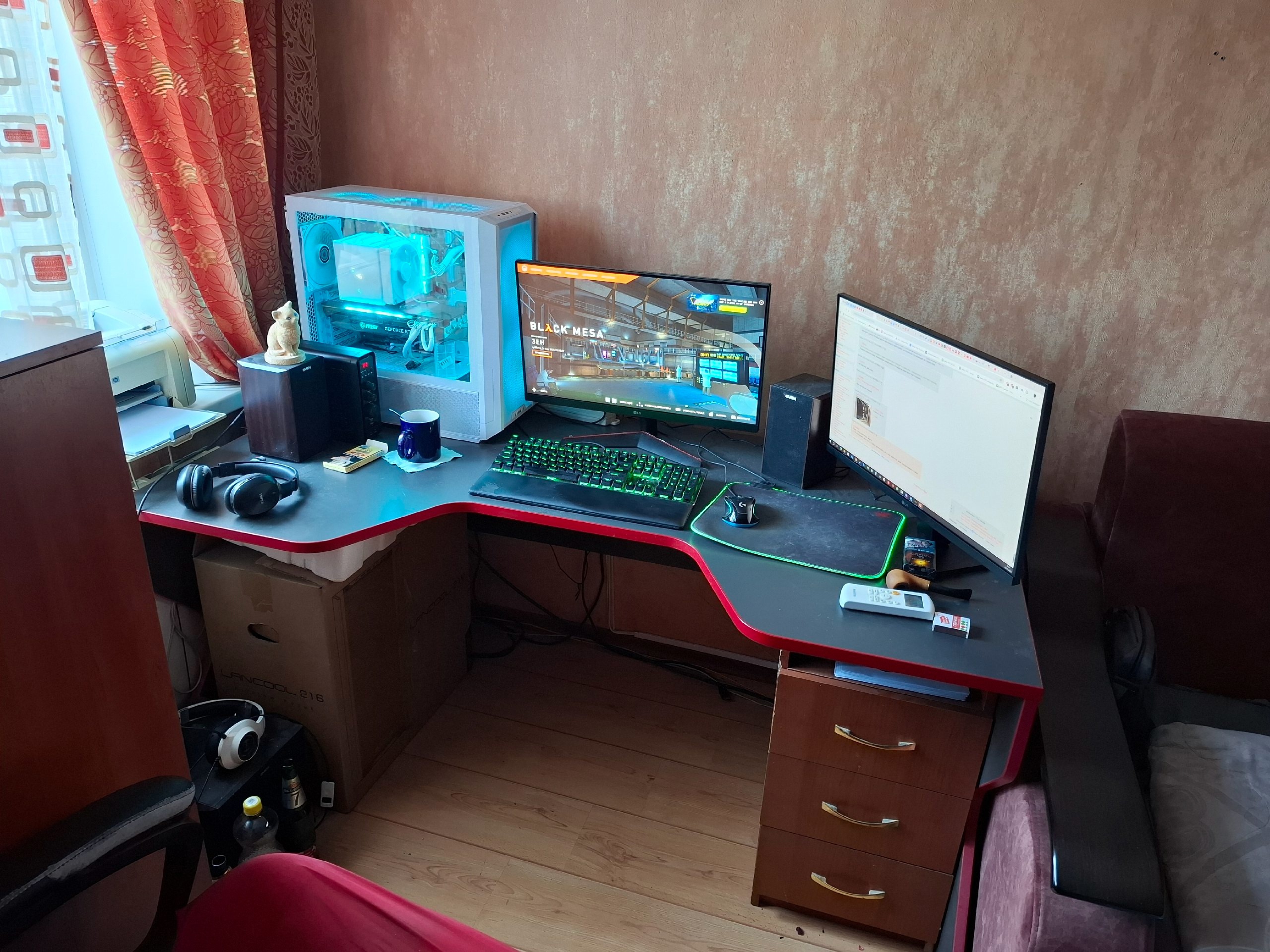 немного появились деньги, собрал себе пука (ну не собрал, но уже всё купил, едет) в красивом корпусе ЖОНСБО тк-3, взял манятор 27 и вот теперь захотелось и стол себе наконец щас сижу в хуйне уровня "уголок школьника", он большой, угловой, но это неудобно