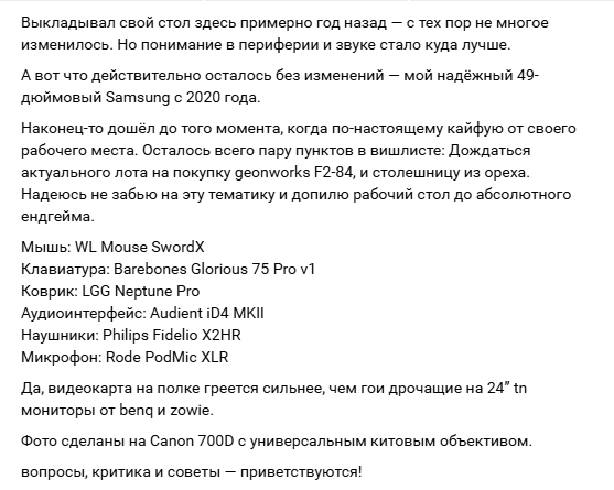 Хуй знает, что за лютая, бешеная дрочка на периферию. Ящитаю, купил в среднем бюджете девайсы, чтобы не сломались на следующий день и устраивающие по функционалу и техническим характеристикам, и норм. Всегда проигрываю, когда не упоминают спеки гроба и какой корпус, но вот смотрите, у меня ультра йоба мышь лимитед эдишн с дырками.