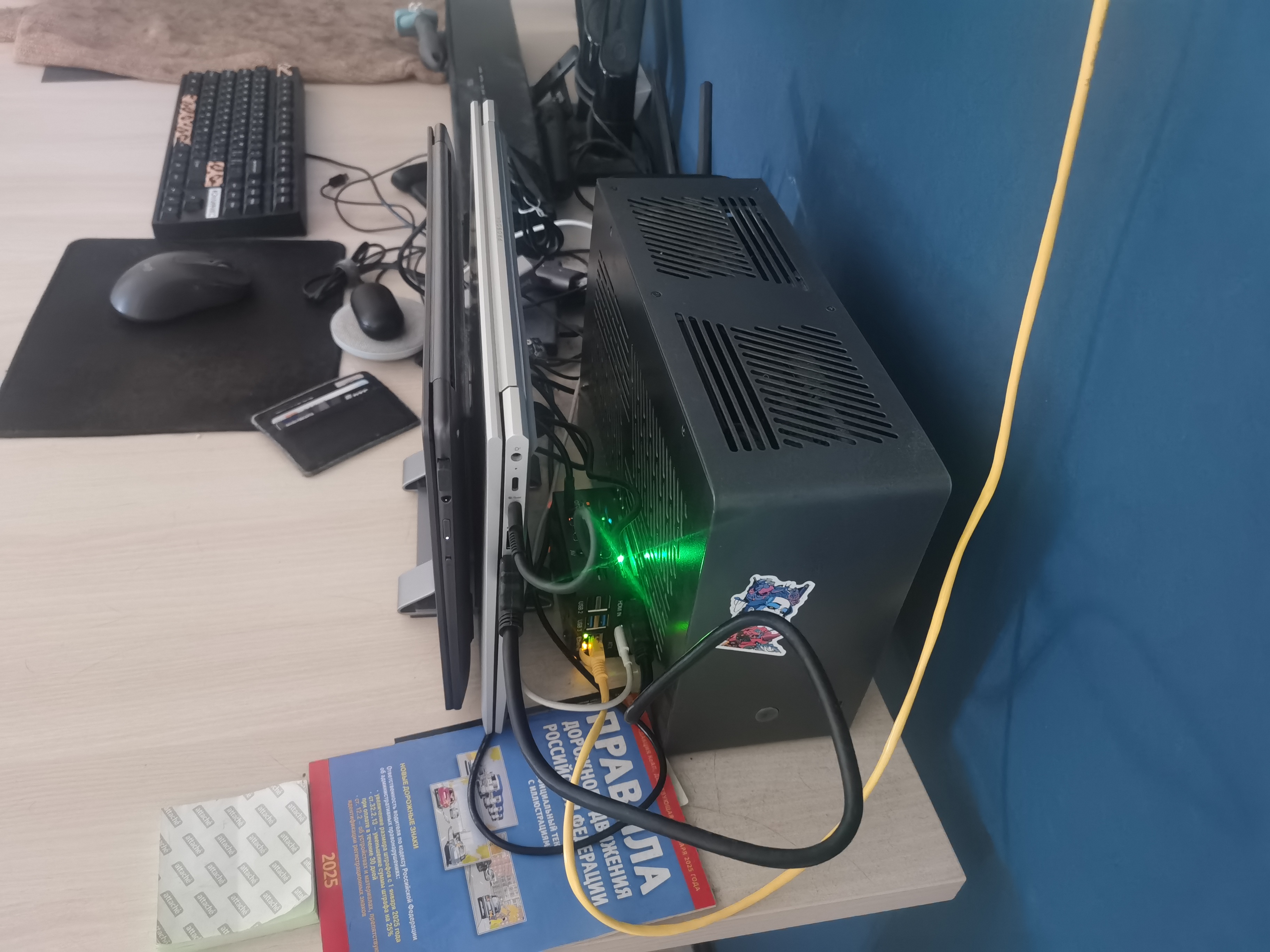 >огромный толстый провод Так-то обычная cat5e витуха поддерживает 1гбит/с не огромная толстая. Не надо тут