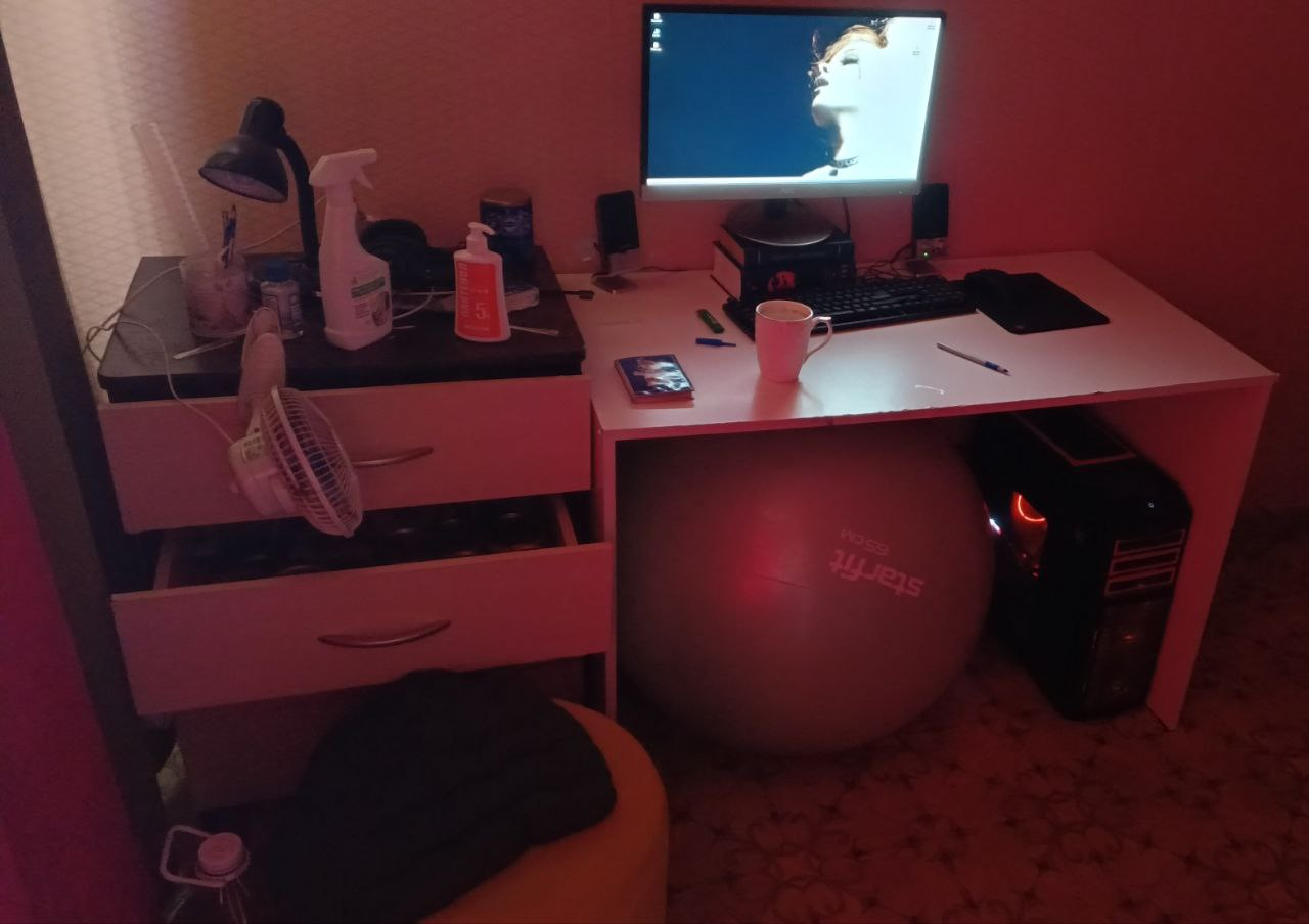 >>7414629 > школьная парта куда не помещается даже 2-й мон > 1-й монитор на кронштейне, не давая никакой функции > принтер под столом, давая повод понагибаться > подставка под ноутбук для ног, показывая кто тут ПК господин > крем и анальная пробка на столе