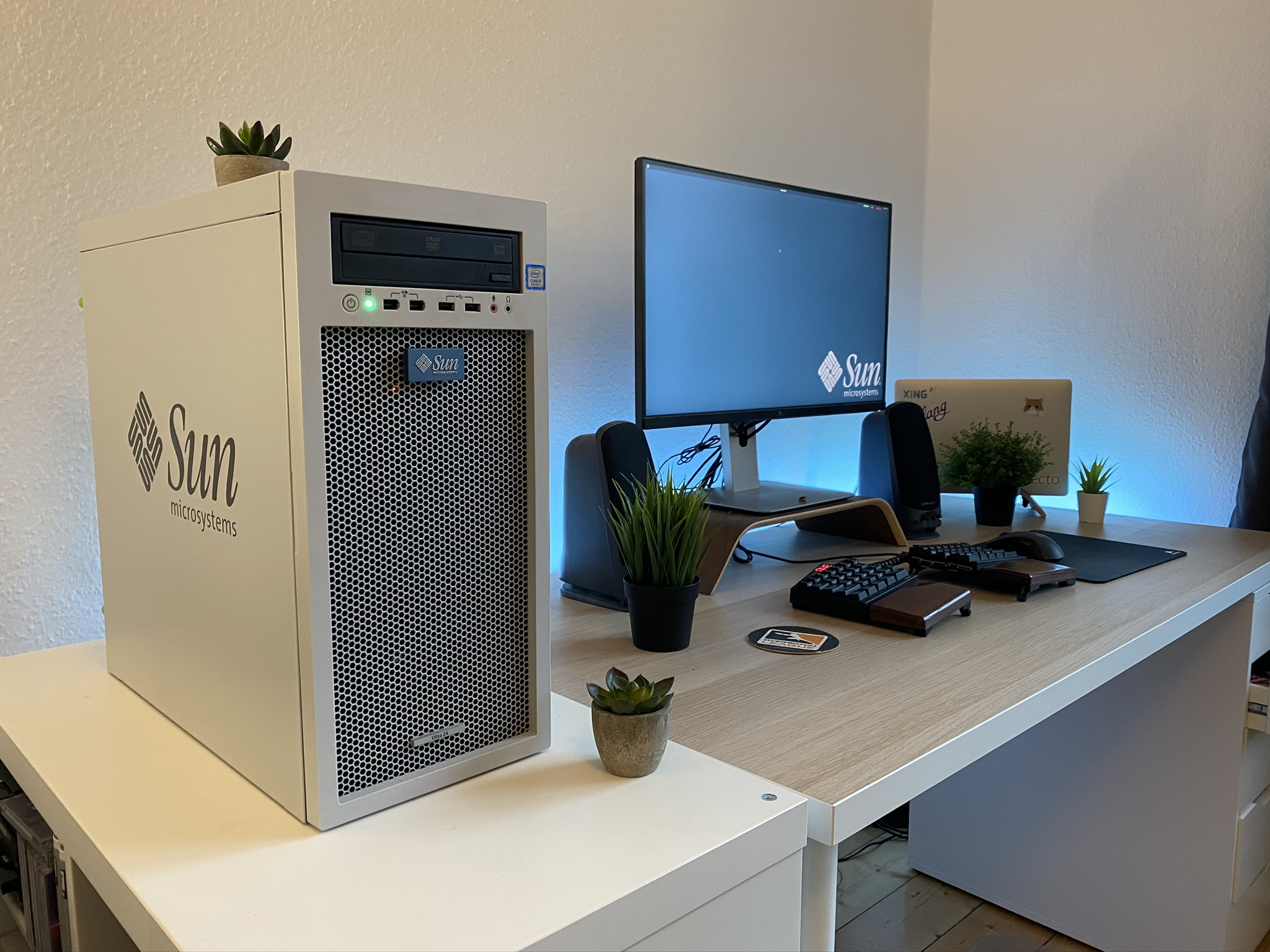 Ну так сравнивай с сановской коробкой современные рабочие станции, а не домашние пекарни, шизло.