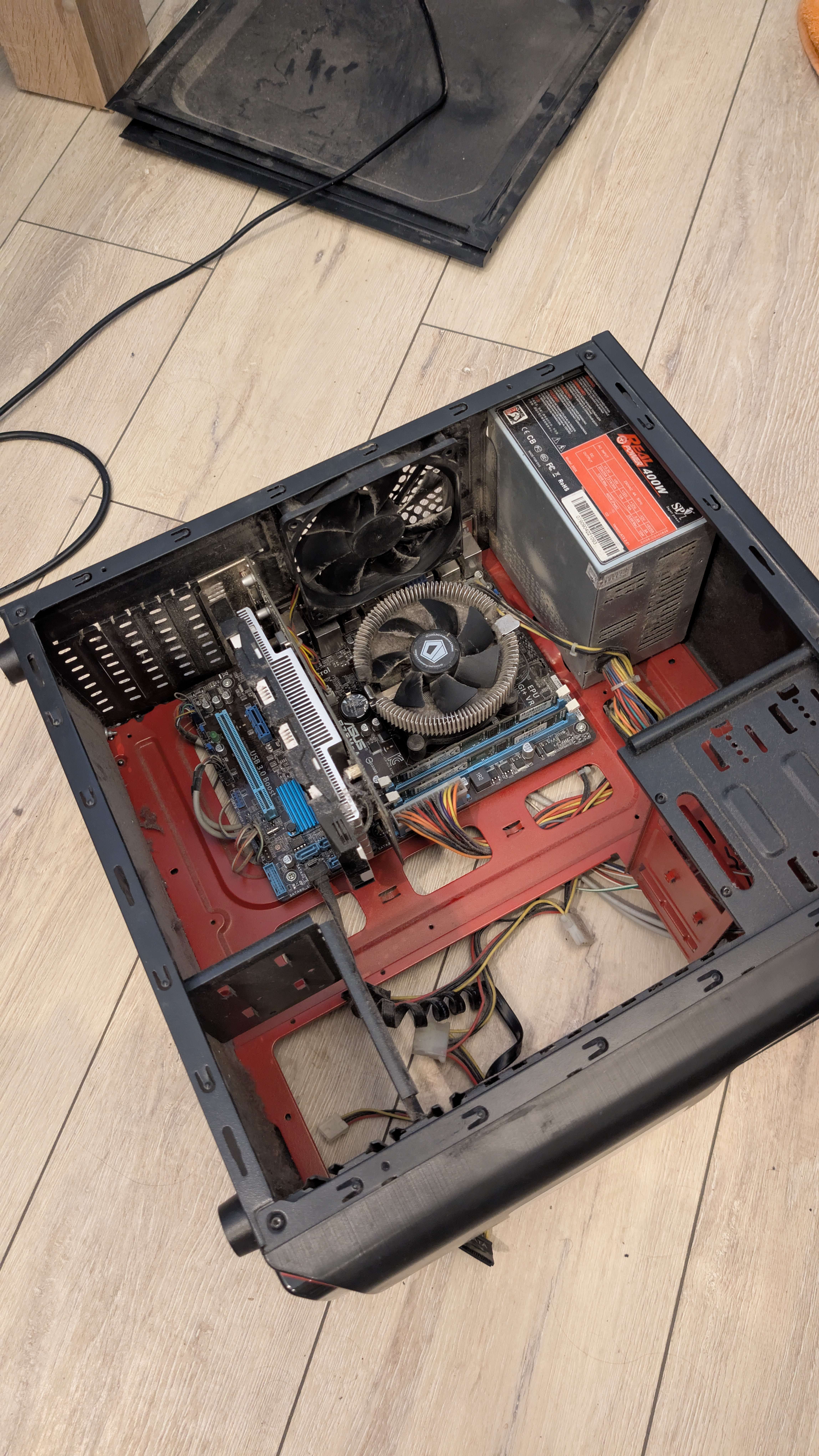 Сап, корпусач. Есть один пук (пик), который я недавно заменил на свой текущий. Характеристики: microatx мать, 1050ti, какой-то допотопный i5, который на текущий момент работает как дерьмо, хард 5200 на 1ТБ, один вентиль на выдув (лол), пердун на 400ват, одна сломанная ножка у корпуса. Собирал всё это не я, а мой батя лет 10 назад в качестве подарка на нг, поэтому за косяки не ручаюсь. Собственно, думаю как от него эффективнее избавиться. Просто выкинуть - ну такое себе, поэтому имеется 2 варианта: - просто продать видюху за 2-4к и чистый хард за копейки и выкинуть остальное; - подретушировать всё железо, добавить один вентиль на вдув, поменять корпус на миниатюрный, типа того, что анон запостил выше (где такие искать? на маркетплейсах даже варианты с ручкой для переноса гигантские), переустановить на хард 10ку и продать с ценником повыше. Что думаете? >>7417837 Всё заебись, но ебучий провод от клавы портит всю картину. Не было бы его - было бы 10/10.