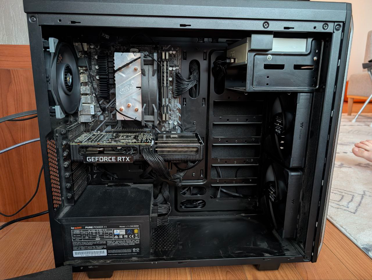>>7412691 1. Аквариум без вертушек сбоку, сверху и снизу 2. Кулер и задний дуют друг-другу в анус 3. Провода от вертушек мотыляются по корпусу, как хуй в проруби 4. Макароны от БП 5. Общее ощущение пустой коробки