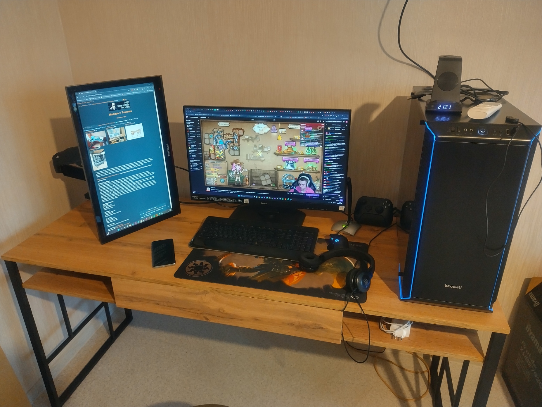 >>7411951 >только столешницу купил Нет, анон внизу прав. Я оставил от старого стола тумбу с ящиками. >че за наушники? Белые проводные Edifier G2II, черные юзаю со смартфоном Edifier W800BT Plus >>7411896 Спасибо за поддержку. На самом деле я особо со столом не заморачивался, хотел закупиться только в днс, потыкался, а там особо выбора и нет. Остановился на этом. Мне стол нравится, удобный, локти можно класть по краям выреза, длина 160см, еле влез, в общем кайфово и главное недорого.