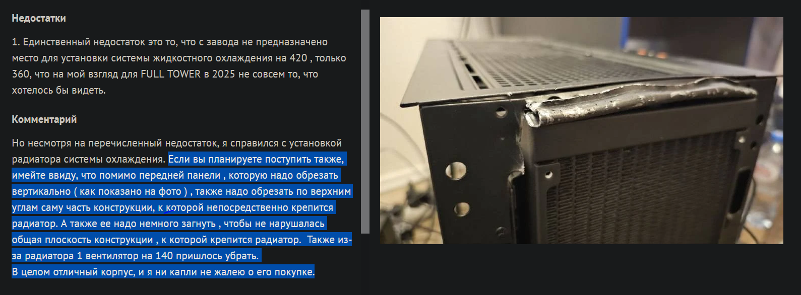 >>7412697 >Но вообще любой корпус можно заколхозить, достаточно взять рулон сетки и горсть мелких магнитов Оставь свои колхозные советы при себе и не пиши хуйни. Тебе тоже можно в очко засунуть глушитель от мерса, но геликом ты не станешь.