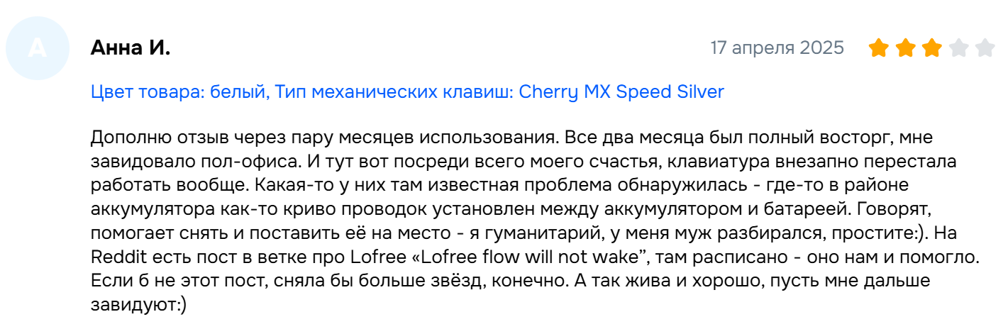 >>7414952 >А что ты собрался у них софтом делать? У меня Нюфаня, но я, как казуальный пользователь, до софта и не дошёл. А у той PCB, которую ты выбрал, проблем с софтом нет? Честно, я уже не помню все проблемы, которые возникали с лофри и нюфи у людей. Лишь запомнилось, что у некоторых клавы спустя время просто тупо переставали реагировать на нажатия, были проблемы с софтом, который не запускался. Такая же шляпа была и у кейхрона. У меня все эти негативные отзывы уже в кашу превратились. Я просто все эти марки отмел и всё, чтобы даже риска не было. Я не говорю, что 100% брак там у них, но нарваться на такой продукт не хотелось бы. Я хотел взять кейхрон, собственно был выбор между кейхроном q6 max и кастомом, и если бы взял кейхрон, то точно бы отдавал себе отчет в том, что могут быть такие косяки и возможно придется отдавать потом клаву в сервис. Но все-таки выбрал кастом. Там база от Монсгика, QMk,via просто нет, есть родное приложение, про которое ничего плохого не слышал. Вообще не понимаю нахуя платить за приложения, которые не работают? Я как минимум на лоджитеке менял назначение клавиши F5, чтобы страница обновлялась без зажатия с Fn. > рассматривал ли ты тактильные свичи изначально и почему отказался? Бля, я уже не помню были ли тогда вот эти различия тактильные, линейные, кликающие. Наверное, тогда были, но по факту все равно они все были громкими у кого я не спрашивал, все отмечали про жалобы со стороны окружающих на громкое клацание. Тогда я еще жил в общаге, потому отказался от механики. Это было года 4-5 назад.