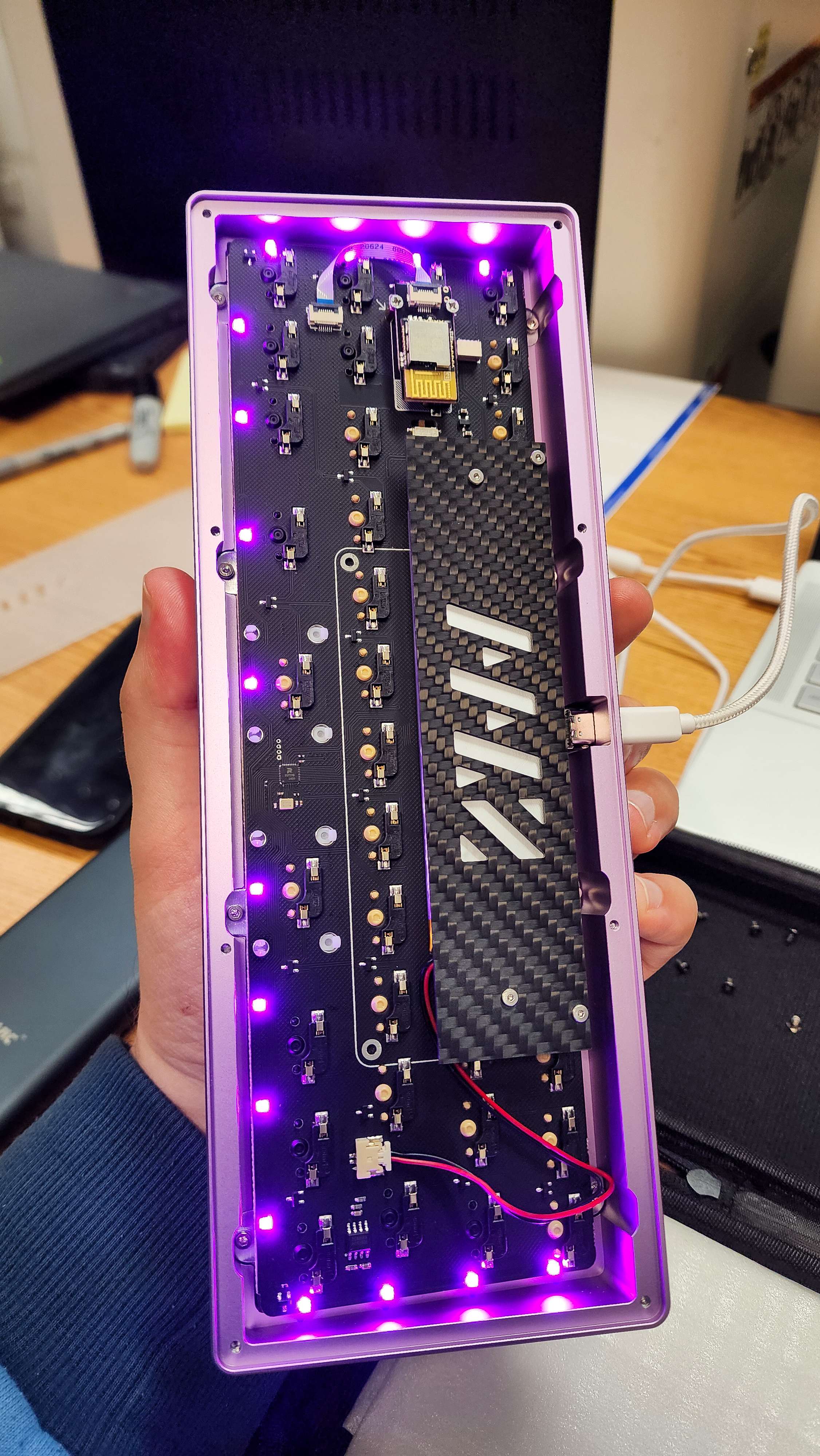 # Итого Батарейку отключил, работает по проводу. Не хватало мультимедийных клавиш (play/pause/mute) в VIA добавил. Позже займусь VIAL (tap dance, home row mods) и прошью.
