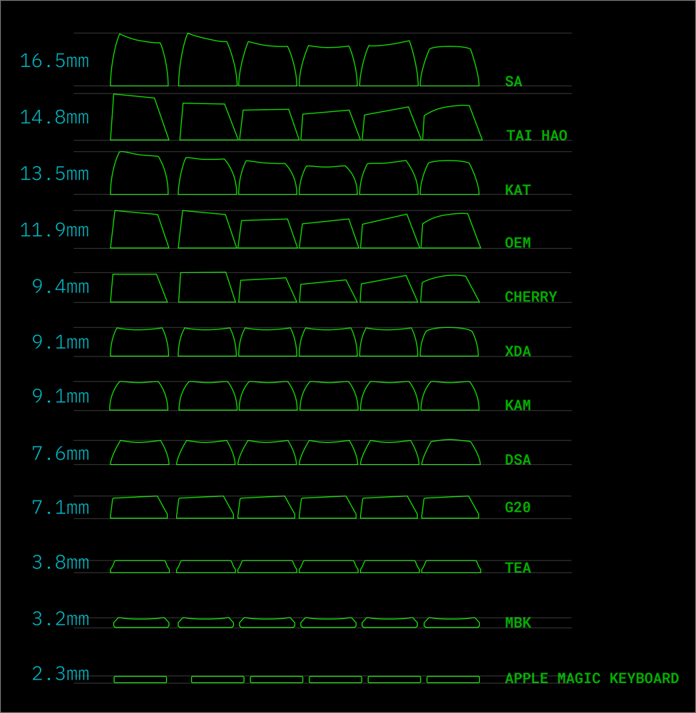 >>7425600 Анон, это профиль MOA, они вот совсем не низкопрофильные, даже выше чем профиль черри нижние ряды, при этом они равной величины. Я брал себе такие, но потом вернулся на черри, мне что то не зашло. В плане качества первые два оч хороши, толщина кепков 2мм, литьё хорошие, принты тоже. Брал как раз в гиксайде