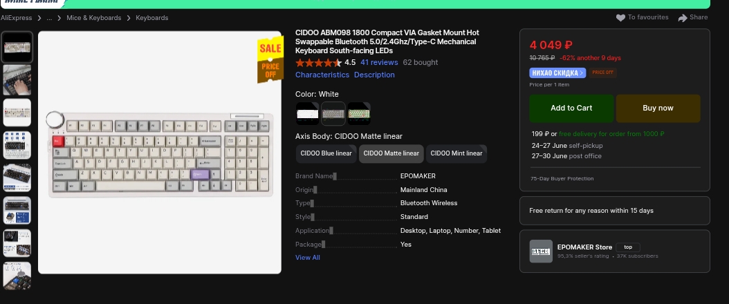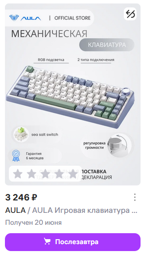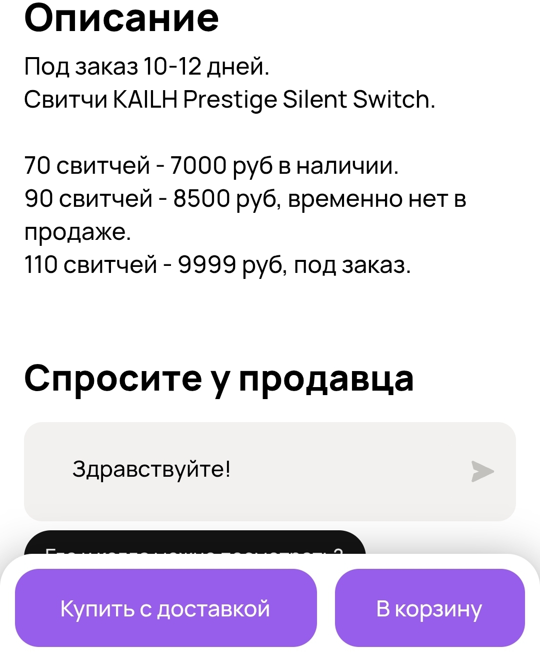 Увидел объявление Bridge75 5500₽, купил не спрашивая продавца. Приехала клава, а в ней свичи другие и пуллера нет! В объявлении про это не упомянули, продавец сказала не шарила, извинялась.
