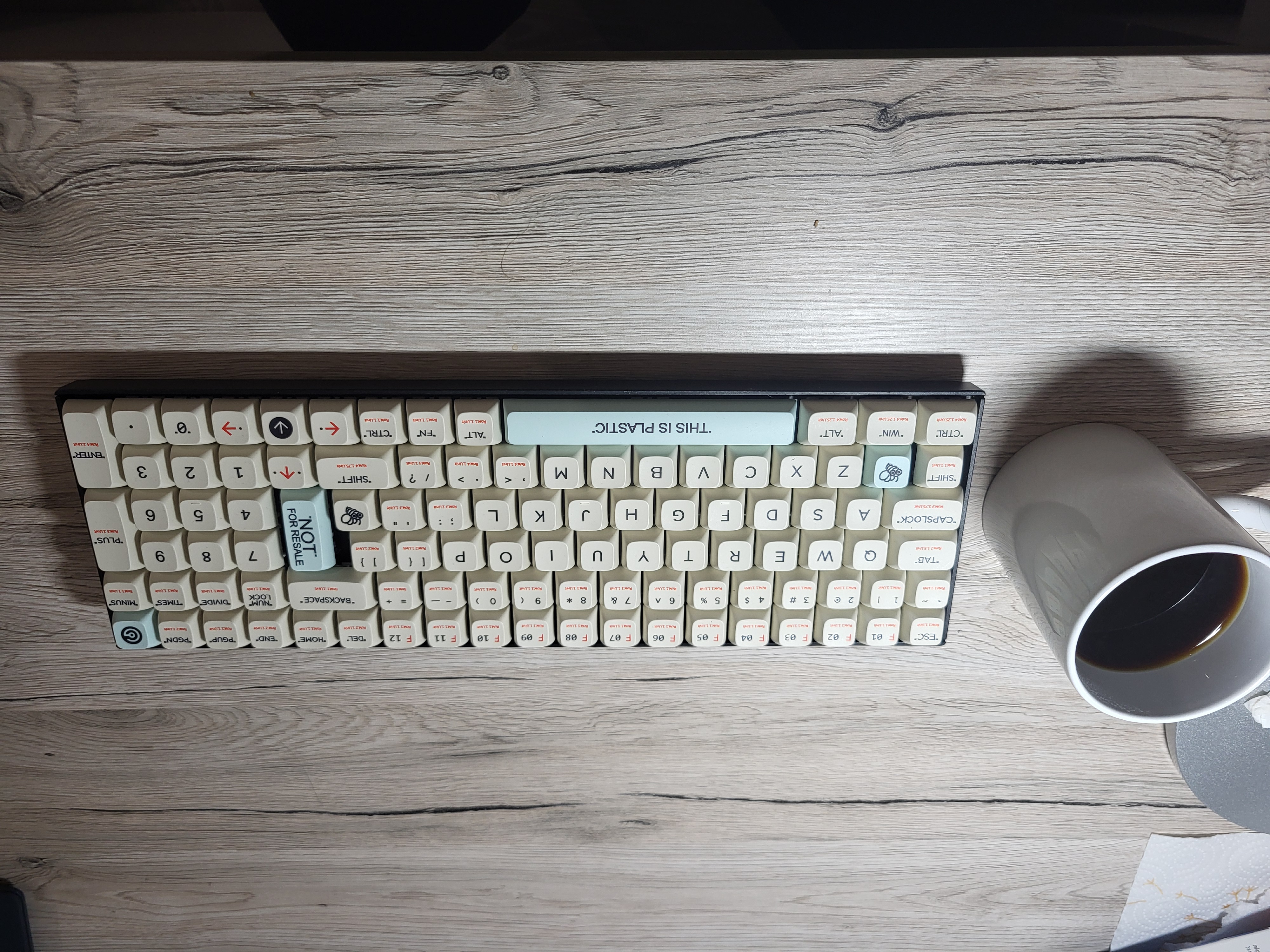 Взял на работку, набирать текст, места мало занимает, за полторашку заебись клава. Все идеально за такой мелкий прайс, тайпинг вполне себе приятный, пробел не шумный, неужели китайцы научились делать очень дёшево и нормально, уровень дорогих клав 5 лет назад, ситуация как с мышками VXE и прочих, оптимизация производства. И ещё приятно что стрелки полноценные включаются навсегда по фн+шифт.