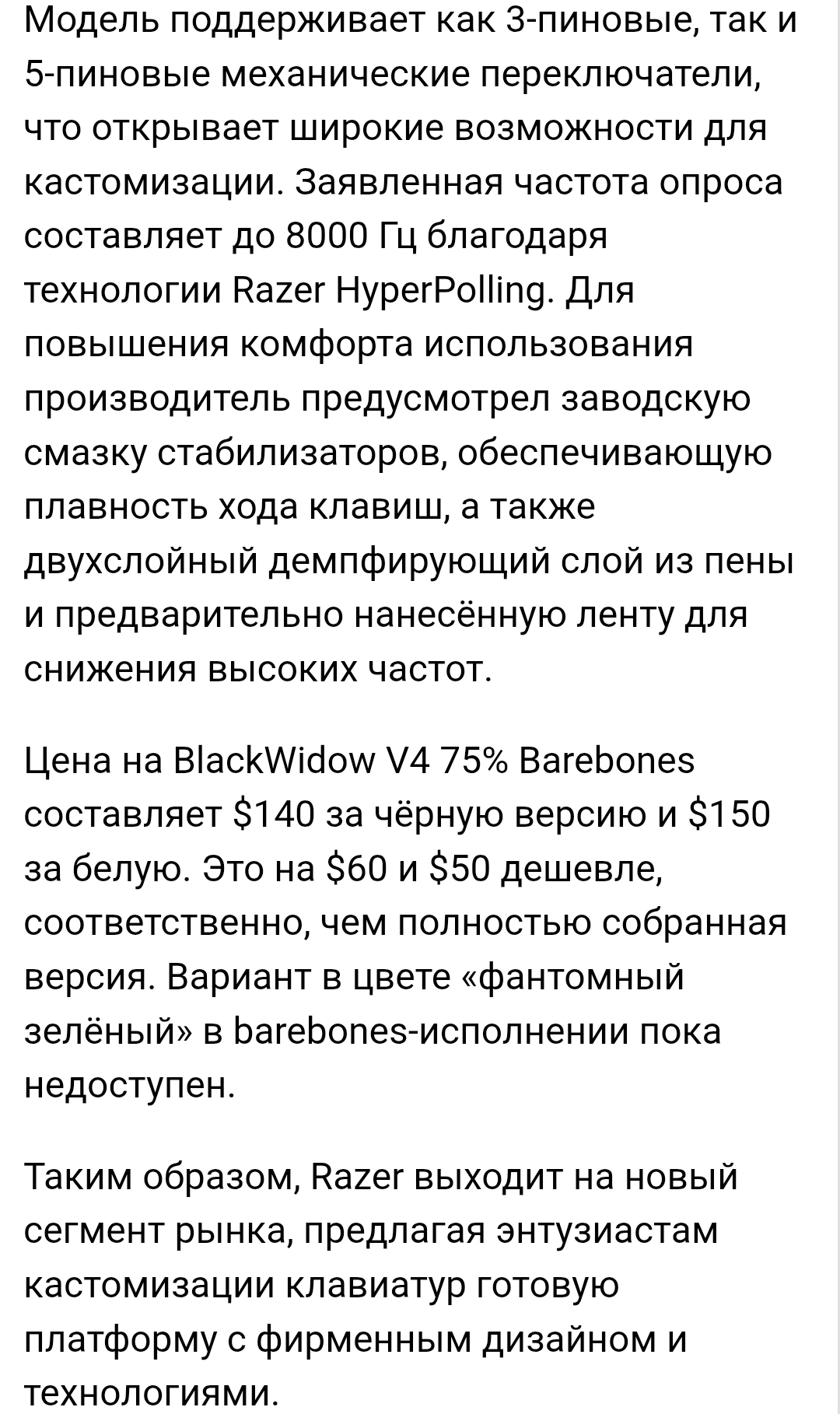 А, из треда я узнал, что геймерам клавиатуры интересны. Но я в таком ничего не понимаю. Думаю, что по большому счету, такие треды именно им и нужны. А не ребятам, уходящим с логитека.