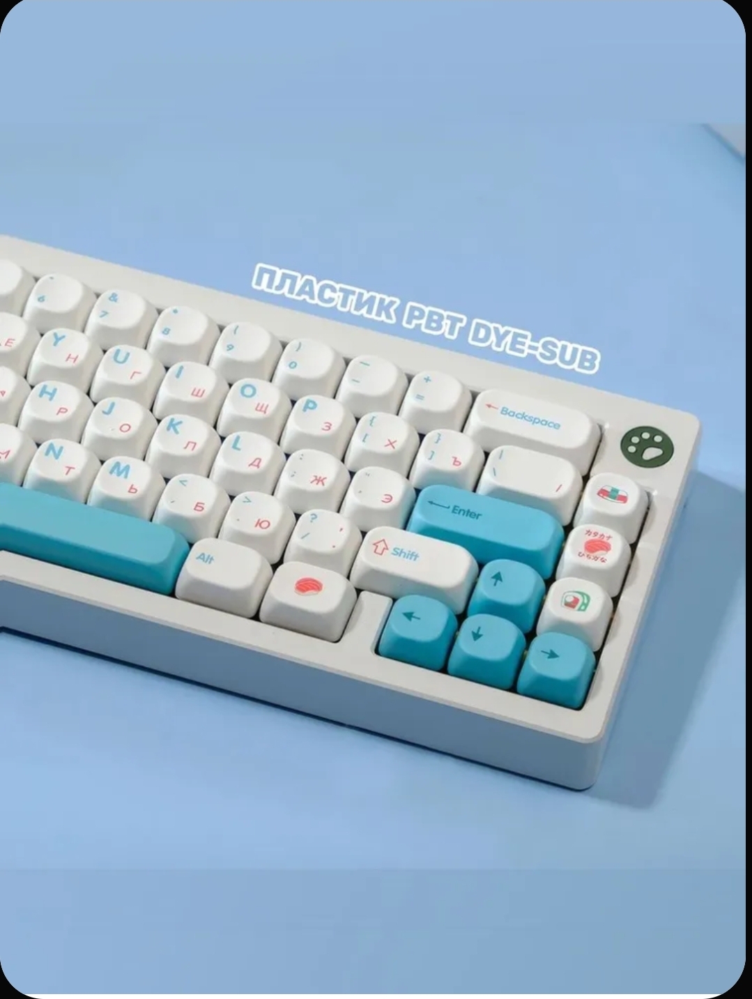 Порекомендуйте кейкапы с похожей цветовой гаммой, но чтобы буквы просвечивались и в идеале имели русскую раскладку. Во всём остальном пикрил устраивает
