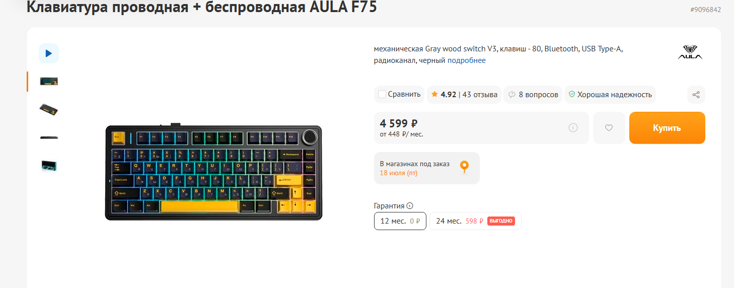 Заказав себе aula f87, как первую механику, я ахуел. И заказал себе ещё одну aula f75. Потому-что блок у f87 с права, вроде как нахуй не нужен, думал не смогу без Numpud, но в целом терпимо. F87 продам пиздюкам на лохите. На софт похуй, на подсветку похуй, если есть что-то за 2500р, лучше aulа f75, ткните носом.