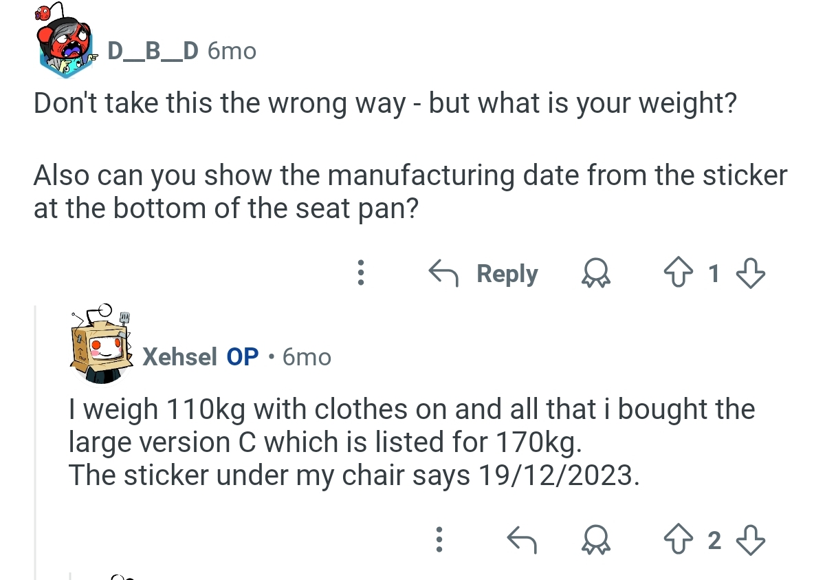 > лэээ аырон держет 160кило!! Как ты смеешь оскорблять барена??? > Сидушка отваливается нахуй при >100кг даже в абсолютно новом кресле самого большого размера, с оф сайта