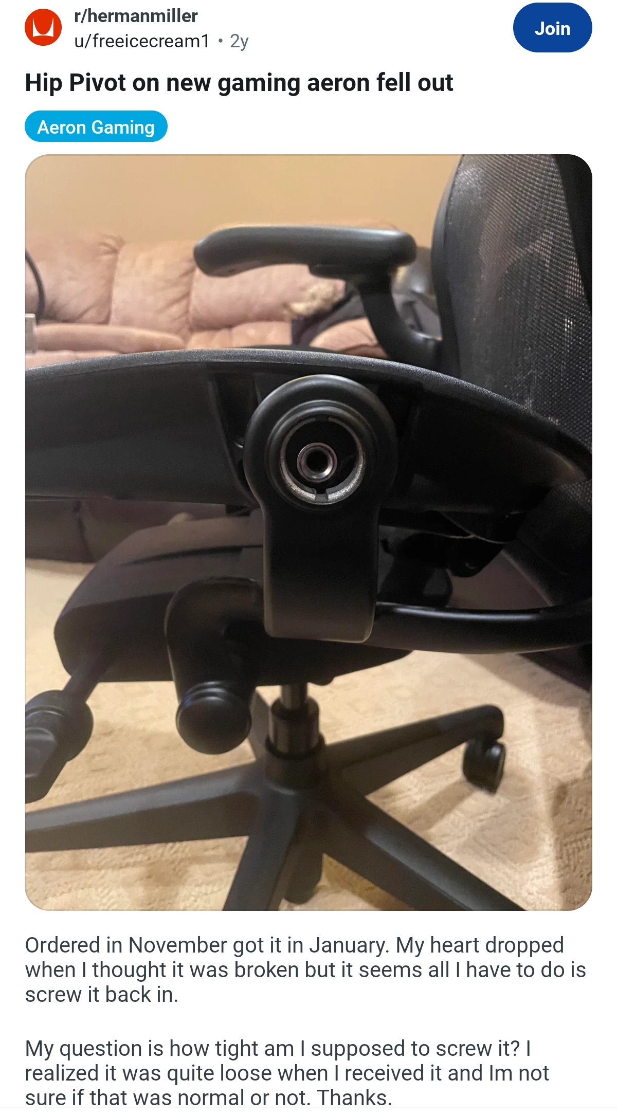 >>7457033 >О а вот и табуреточный нищук пришел рассказывать о кресле которого даже не видел Нормально тебя разворотило. У меня был, мне не понравился. >и также ломается от большого веса Через сколько? Через 15, 20 лет? >160кг маркетинговый пиздеж Как и 12 лет гарантии, судя по всему, потому что ты скозал. >При весе 120-130кг+ гарантированно будет отъебывать пикрил болт, о чем тоже полно отзывов, а эти болты кучей продаются зарубежом, потому что у Аэрона это расходник А теперь сложи два плюс два и подумай, зачем покупать такой болт на амазоне? Наверное, потому что кончилась гарантия, т.е., креслу больше 12-ти лет. В противном случае ты бы просто обратился к производителю. >газлифт просто придет ви негодность >ломается он к счастью не так часто По-моему, как ты говоришь нищук-теоретик здесь только ты.