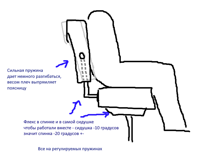 >>7419453 там два жирных кронштейна один подпружинен спиралью. хз почему эргономиксы делают из говна и палок, достаточно взять игросрал, перепроектировать спинку, убрать уши, и сидушку поудобнее.