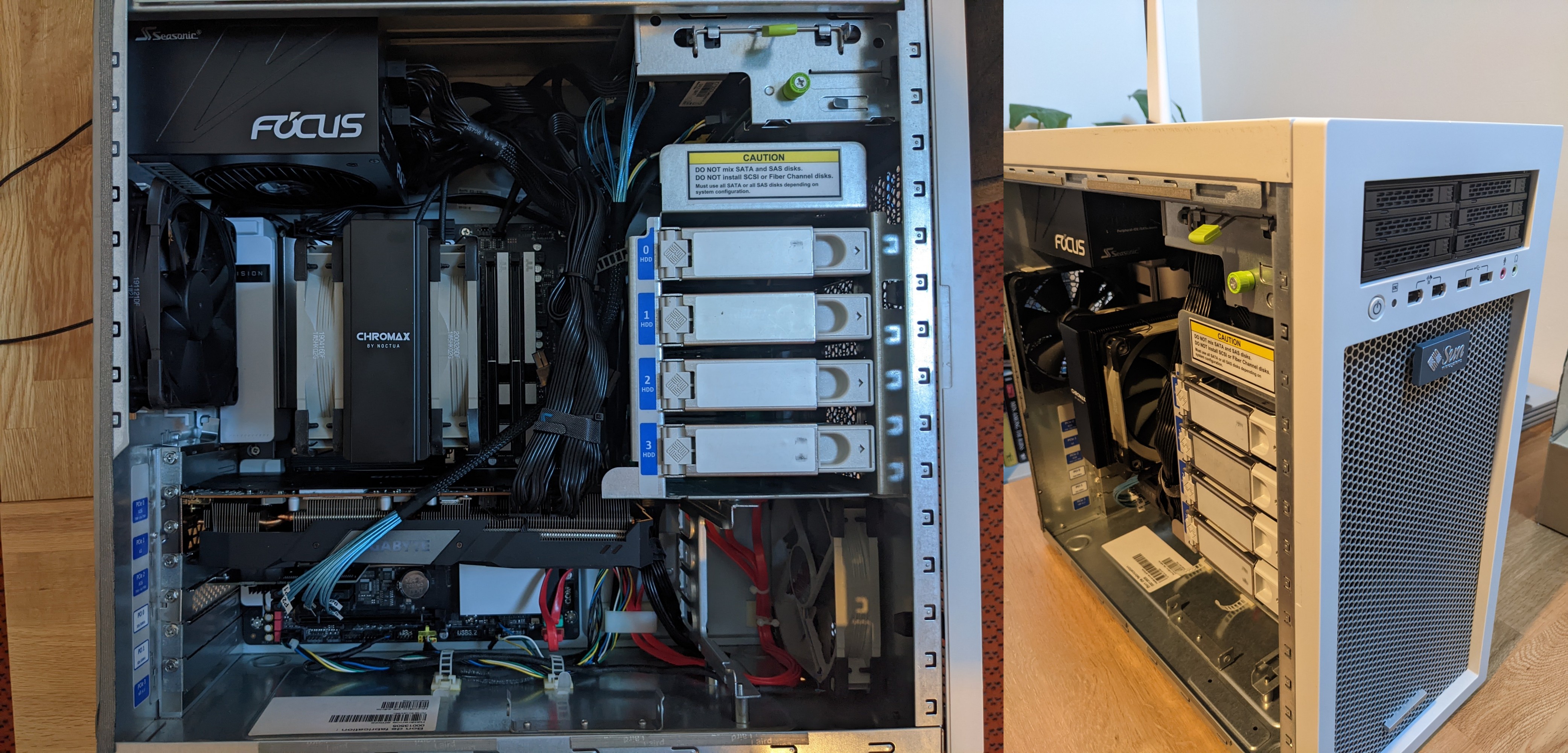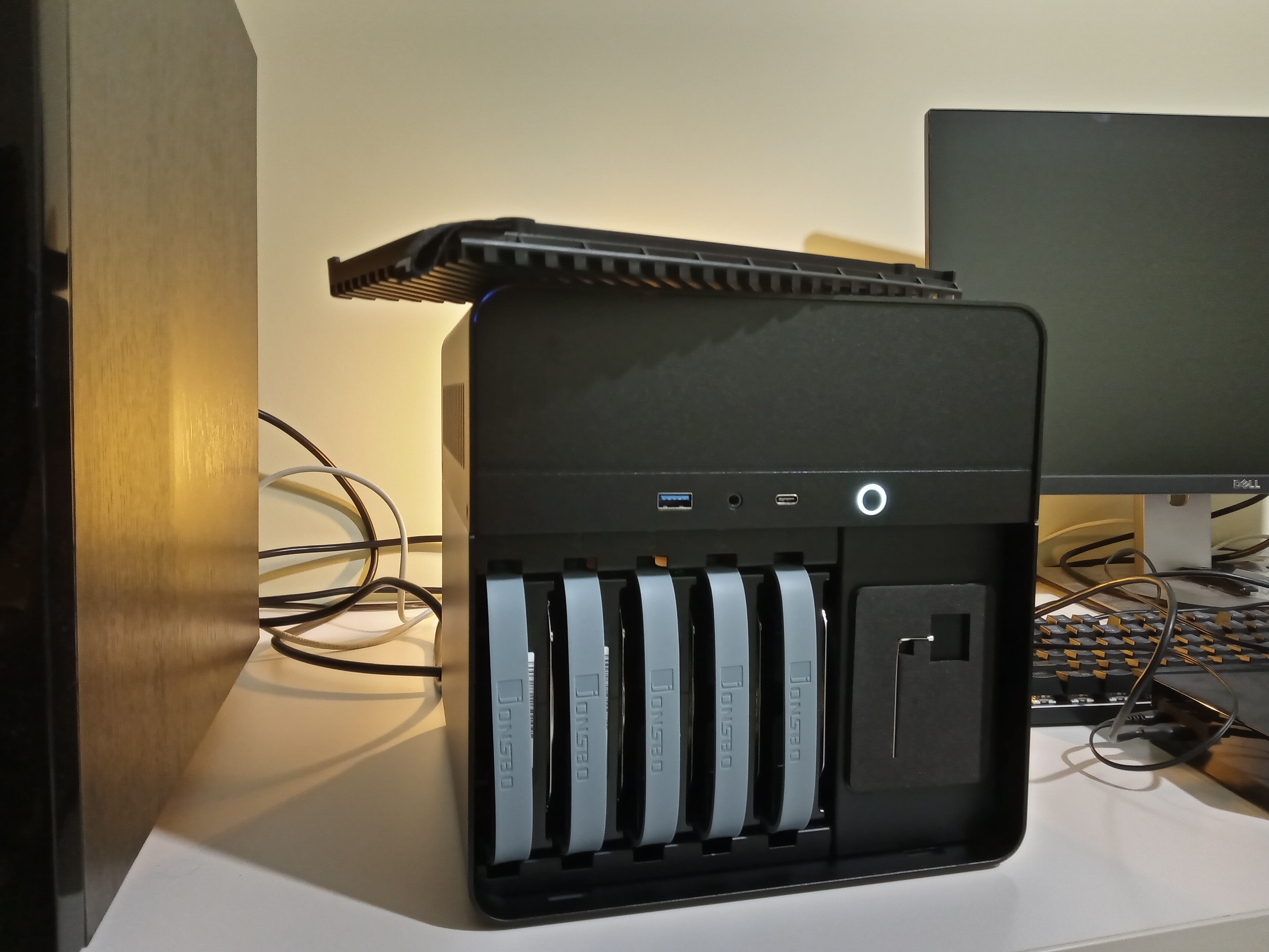 >>7426365 5 дисков WD Red по 4 Тб, m2 SSD 512 Gb под Proxmox (система), ещё один SSD под application cache для TrueNAS. SATA-контроллер прокинут в виртуалку с этим самым TrueNAS'ом. Камень 5700G, памяти 64 Gb. Охлад проца Thermalright какой-то, на нохчу жаба задавила и так 4.5к кажется отвалить пришлось и заказывать с алика. Весьма компактная штука, закинул его на полку в икеевском стеллаже.