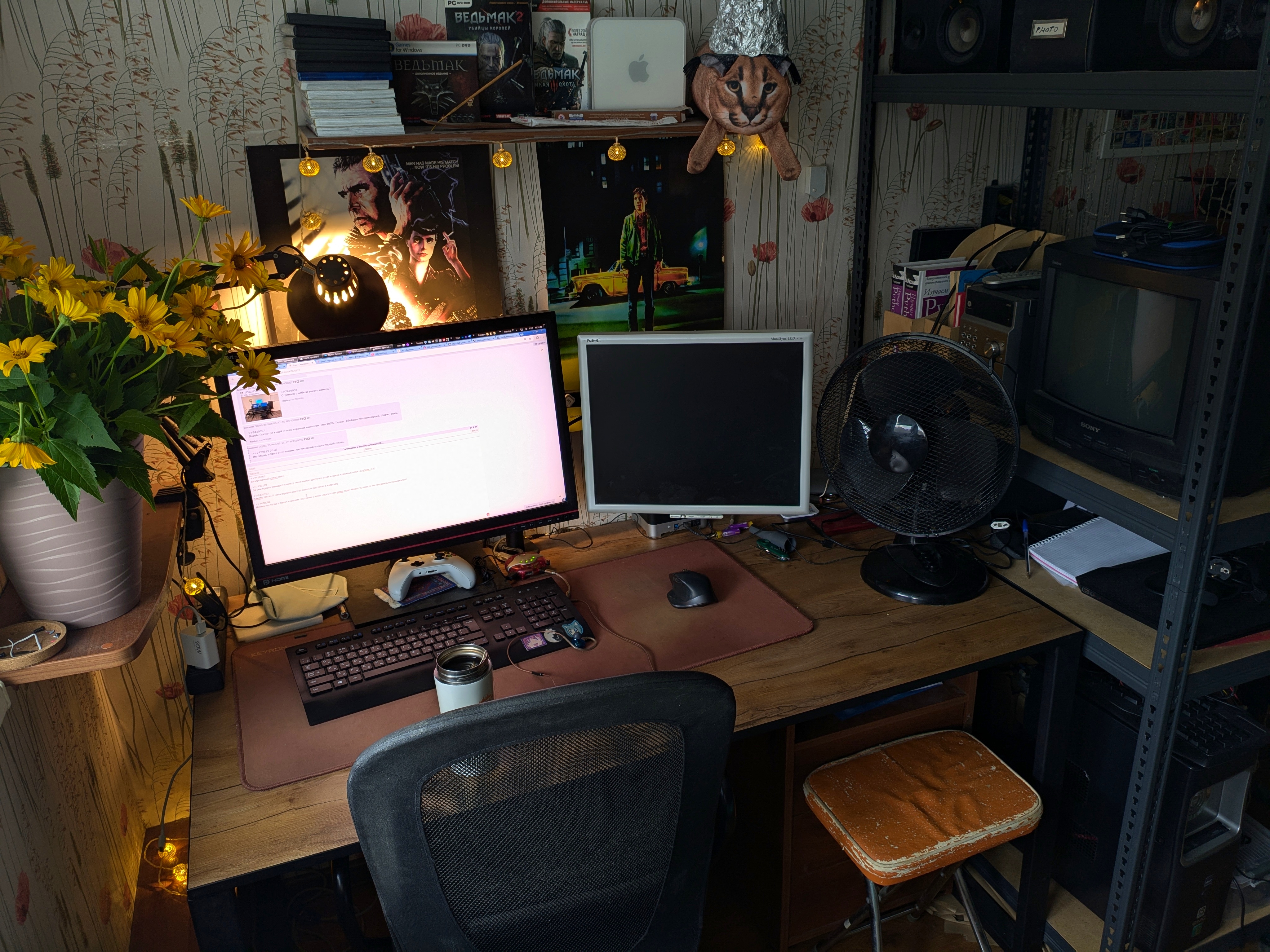 >>7429765 Ёмоё, как же уютно, так и хочется тут посидеть, на двачике покапчевать. Освещение, постеры фильмов, книжная полка, цветок - всё в тему и создаёт атмосферу. Если гирлянду врубить, так вообще топовая сычевальня будет. Остальные в треде походу завидуют