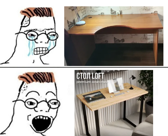 Дуб бровотан это новый белёный & венге у блинопекных? Открываешь каталог мебели на любом маркетплейсе, везде это говно на черных профильных трубах. Карго культ имитация лофта в бараке с потолками менее 2,5м. Пиздец.
