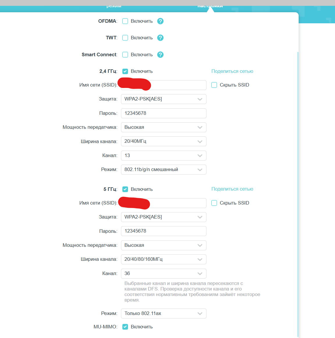 >>7446356 1) Отключи нахуй смарт коннект, все устройства кроме шлема должны быть подключены к 2гц, им нахуй 5гц не нужно. 2) Раздели каналы, на автомате соседи заебут своими вайфаями 3) На частоте 5гц включи 160гц, у тебя роутер щас не работает на нужных мощьностях. Держи мои настройки, можешь сделать как у меня
