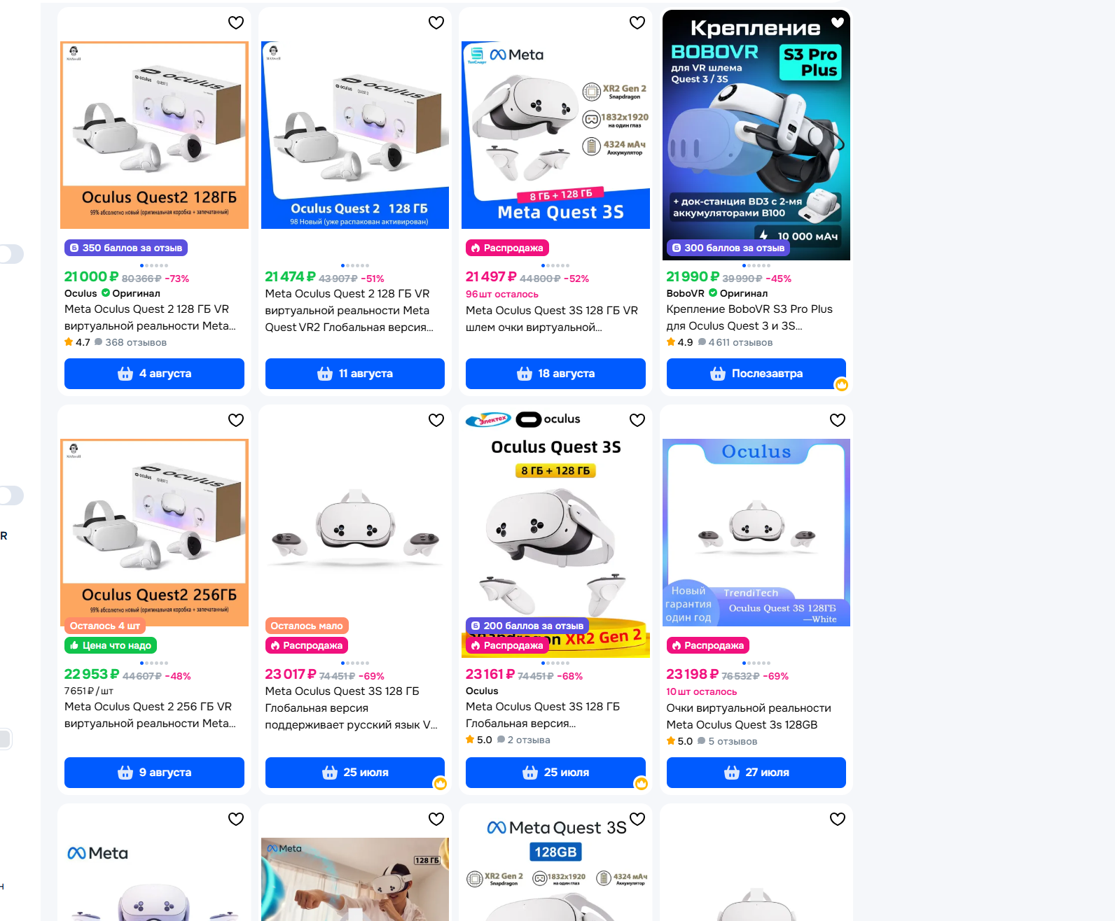 Подозрительно мало стоят эти quest 3 и pico 4 (ultra, дефолтные нихуя не нашёл), я думал это йобахуйня за 200к+, а на хуяндексе/озоне они стоят в диапазоне 30-60к
