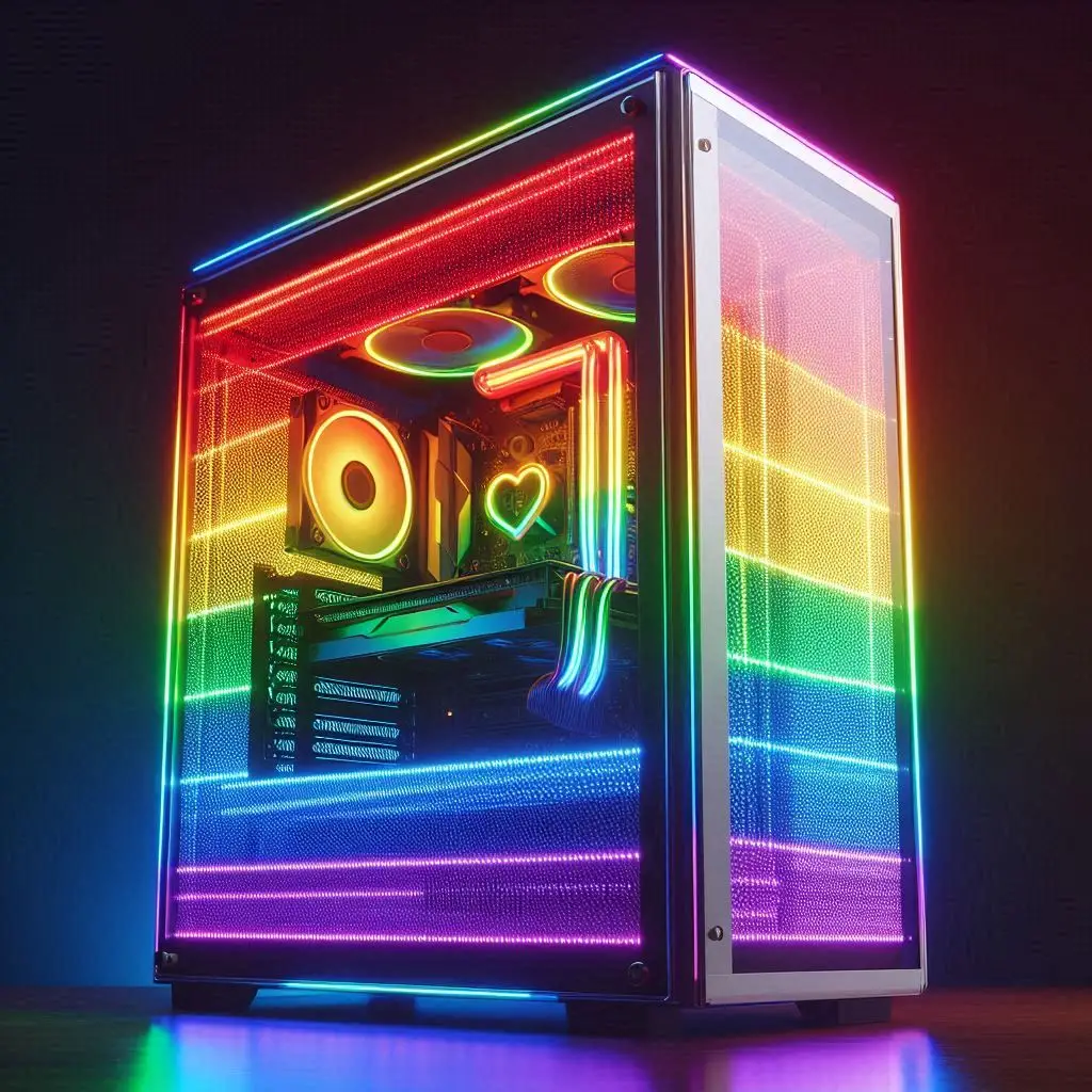 попросил ИИ нарисовать мне корпус мечты. полностью он меня не услышал конечно, сначала не сгенерировал без передней панели, потом вместо того, чтобы убрать кожух блока питания вырезал ещё одно окно снизу, ну я из двух картинок одну слепил. когда лично мне вот такой корпус сделают?