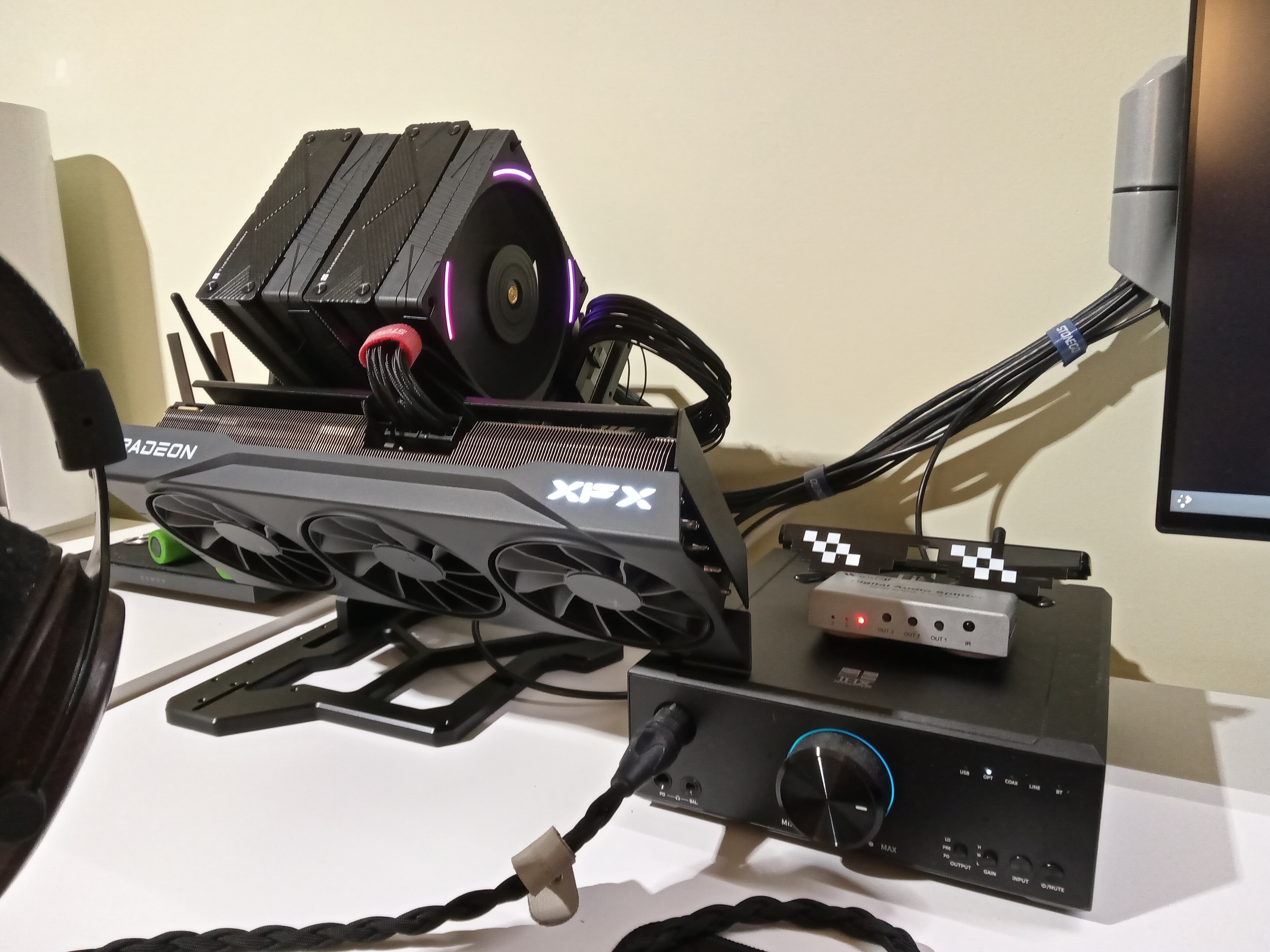 >>7452092 >)) Что он хотел этим сказать? Идея отличная, всем советую так же делать. Буквально решение большинства проблем. ГПУ не проседает, пыль не всасывается, места не занимает, отличные потоки воздушные, потенциально лучшее подавление вибраций (у меня на подушке из пенопласта лежит), лучшая устойчивость, в моем случае так же полная изоляция от стола, что защищает от залития там и всего такого, от животных и детей тоже защищён в таком положении.