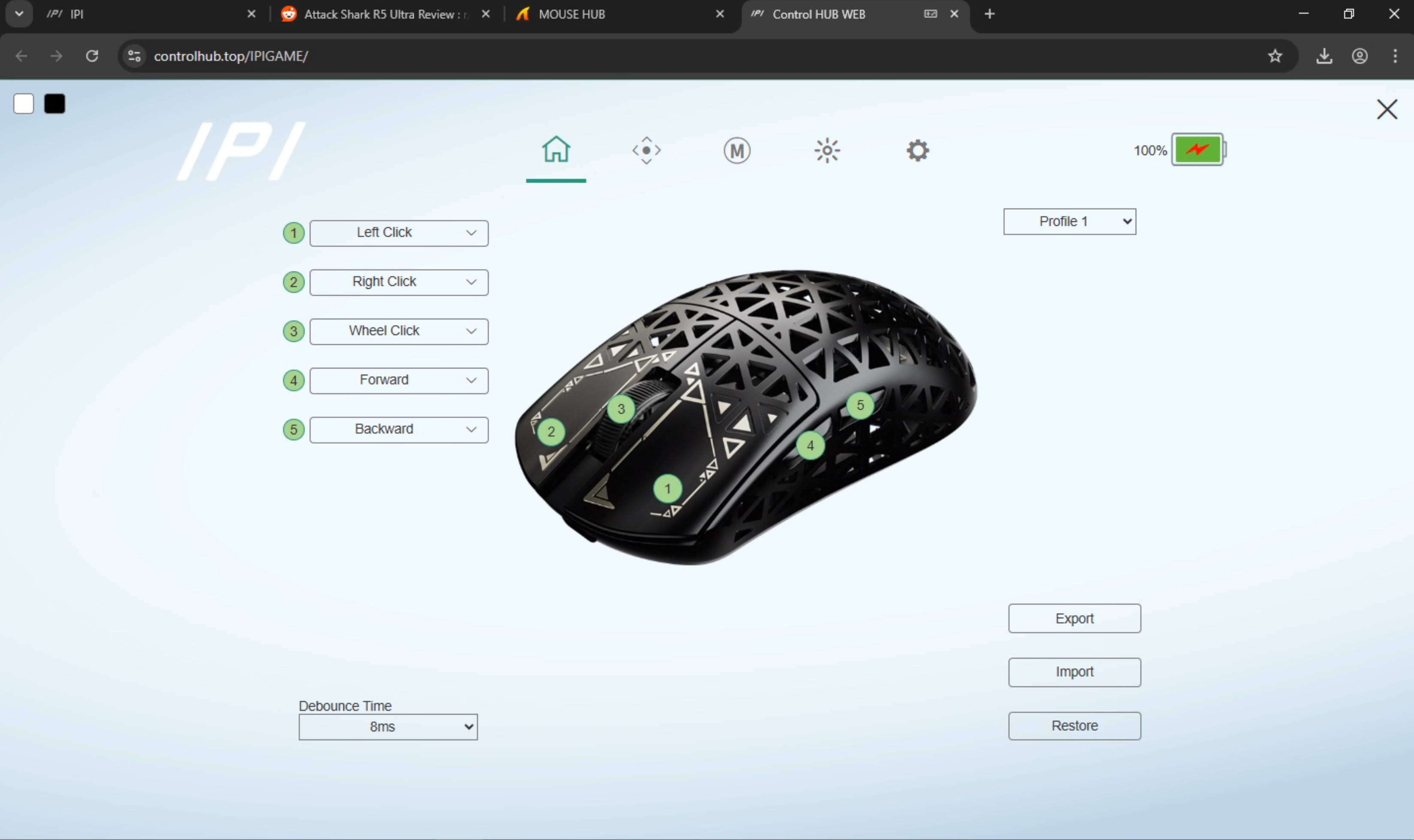 Старый базилиск хайперспид от криворуких трижды ахуевших бракоделов подключен так же по бт, софт определяет, макросы настраиваются, работает с 2021