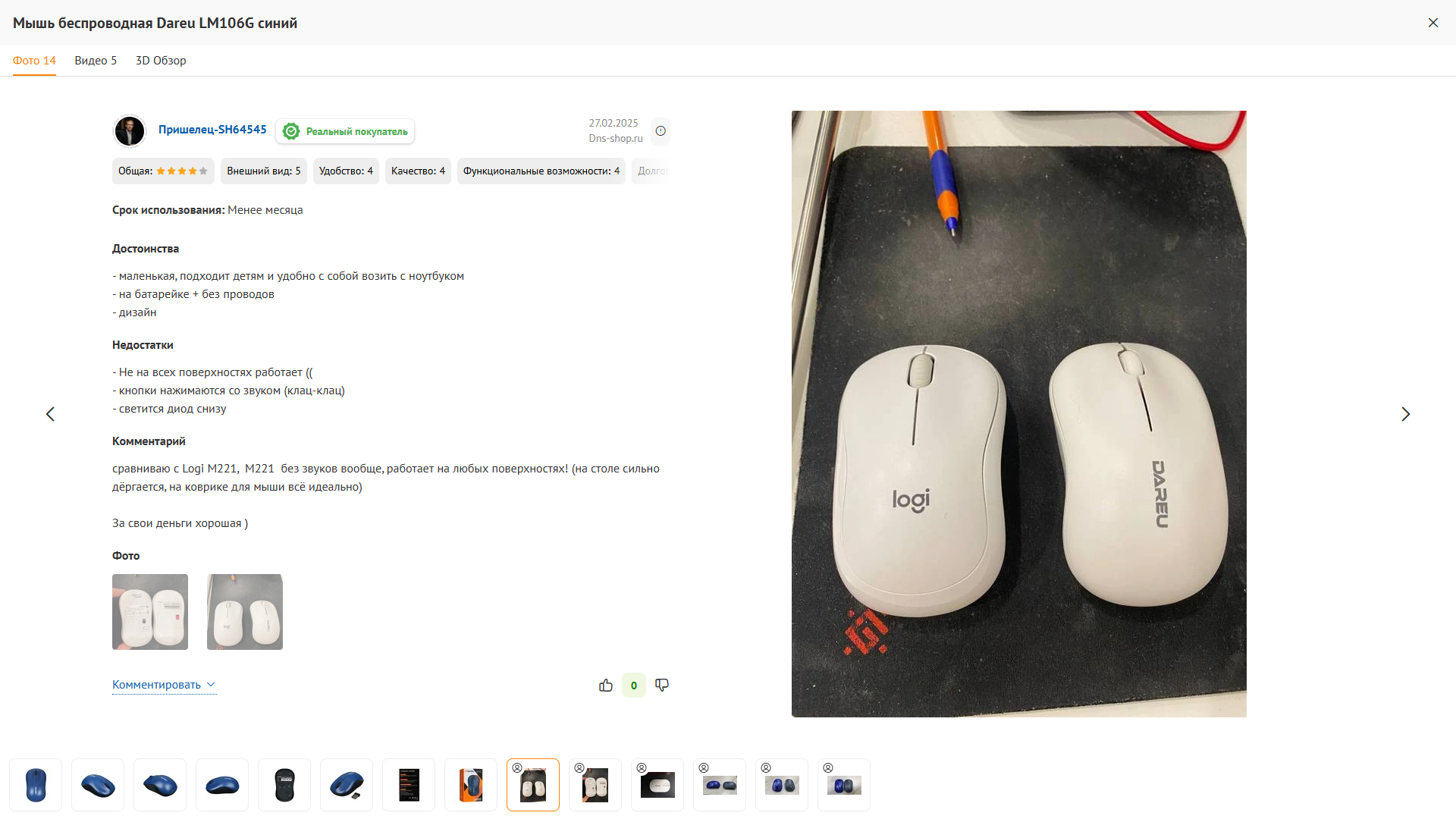 >>7446214 (OP) Купил AJAZZ AJ159 NL с аккумулятором 800мАч для игор, онлайн дрочильни не играю лет десять, поэтому за глаза, попутно купил офисный комплект клавиатура + мышь для скроллинга интернетов с дивана/кровати — Dareu MK188G, мышь отдельно продаётся — Dareu LM106G. Что хочу сказать, здравая идея разделять по использованию, офисную мышку не жалко просто по дивану елозить, даже эсли упадёт случайно, то похуй. Так как играю редко, то больше времени сижу с офисной мышкой, ради интереса разобрал её, когда собирал обратно, то очевидно затянул болтик сильнее завода, накликивать стало проще и приятнее, прям чувствуется, хотя микрики там дешёвые Huano, после сборки мышка стала греметь линзой и кнопкой выключения, не помню чтобы это было из коробки, тут всё-таки решил исправить дело, обострение шизофазии, приклеил линзу на двухсторонний скотч к корпусу, под кнопку выключения также на корпус приклеил скотч, но верхнюю плёнку оставил, не гремит теперь, на среднюю кнопку мыши приклеил кусочек тряпочной изоленты, которой обычно сенсоры накрывают в дешёвых мышках, но в месте толкателя приклеил ещё кусочек с обратной стороны изоленты, чтобы клей микрик не испортил, теперь и колесо тихое. Раз такая пьянка, то и на толкатели основных клавиш наклеил тряпочную изоленту, на толкатели верхней крышки, не на микрики, теперь так сильно затягивать болтик не нужно, а то будет правая кнопка залипать, вот этот момент мне напомнил несколько отзывов к игровым мышкам, где требовался конкретный момент затяжки, ради интереса решил покликать на AJAZZ AJ159 NL, это была ошибка, я чуть подливу не пустил, когда пришло понимание, что на офисной мышке с дешевыми микриками клик лучше в разы. Dareu LM106G по сути клон мышек Logi, но у Logi корпус из трёх частей, бывает колесо на оптике, плюс кнопки вперёд-назад на колесе, но это мне не особо важно, как на оригинале с накликиванием? Там такой же лёгкий и приятный клик? Или это случайно получилось у дешевого клона с упрощенным корпусом? Теперь думаю найти игровую мышку подобного размера и устройством корпуса, при пальцевом хвате маленькая мышка даже удобна, все эти эргономичные мышки, на мой взгляд, прогрев гоев, которые использую ладонный хват, видел обзор на Ютюбе маленькой мышки похожей на шар для гольфа, но сейчас не могу найти, в общем интересуют маленькие мышки с хорошим кликом на нормальном сенсоре с большой частотой опроса.