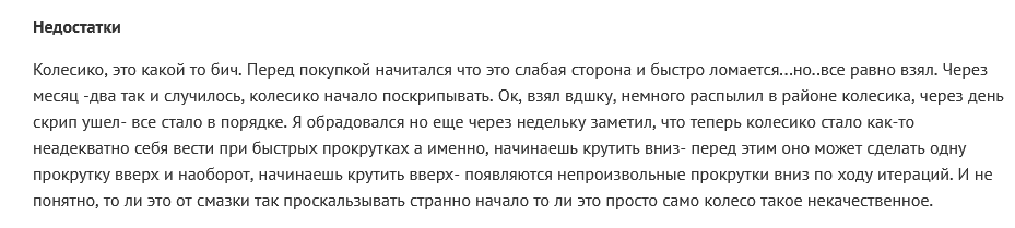 >>7450406 Да похуй на твой энкодер, кого это ебет кроме трясунов и долбоебов типа тебя? У меня было > 20 мышек за последние 2 года, нигде ничего не отрыгнуло, ни скрол, ни микрик.