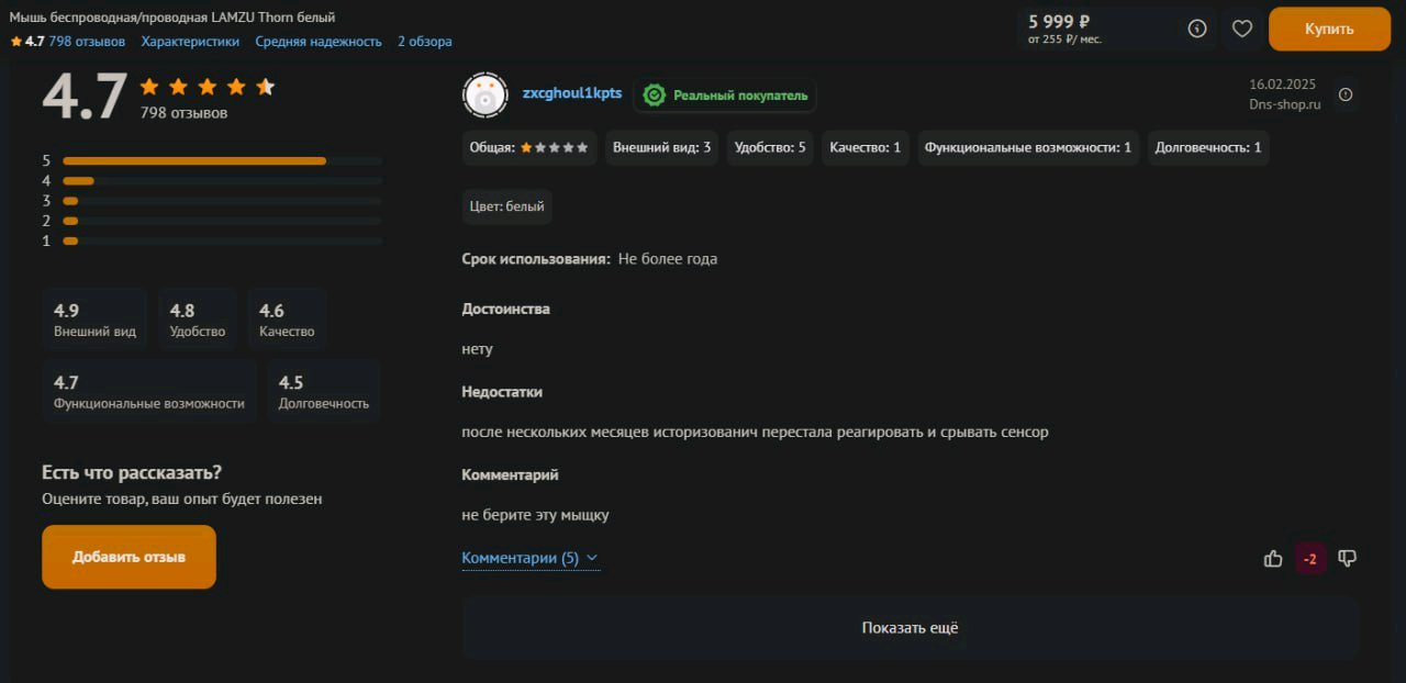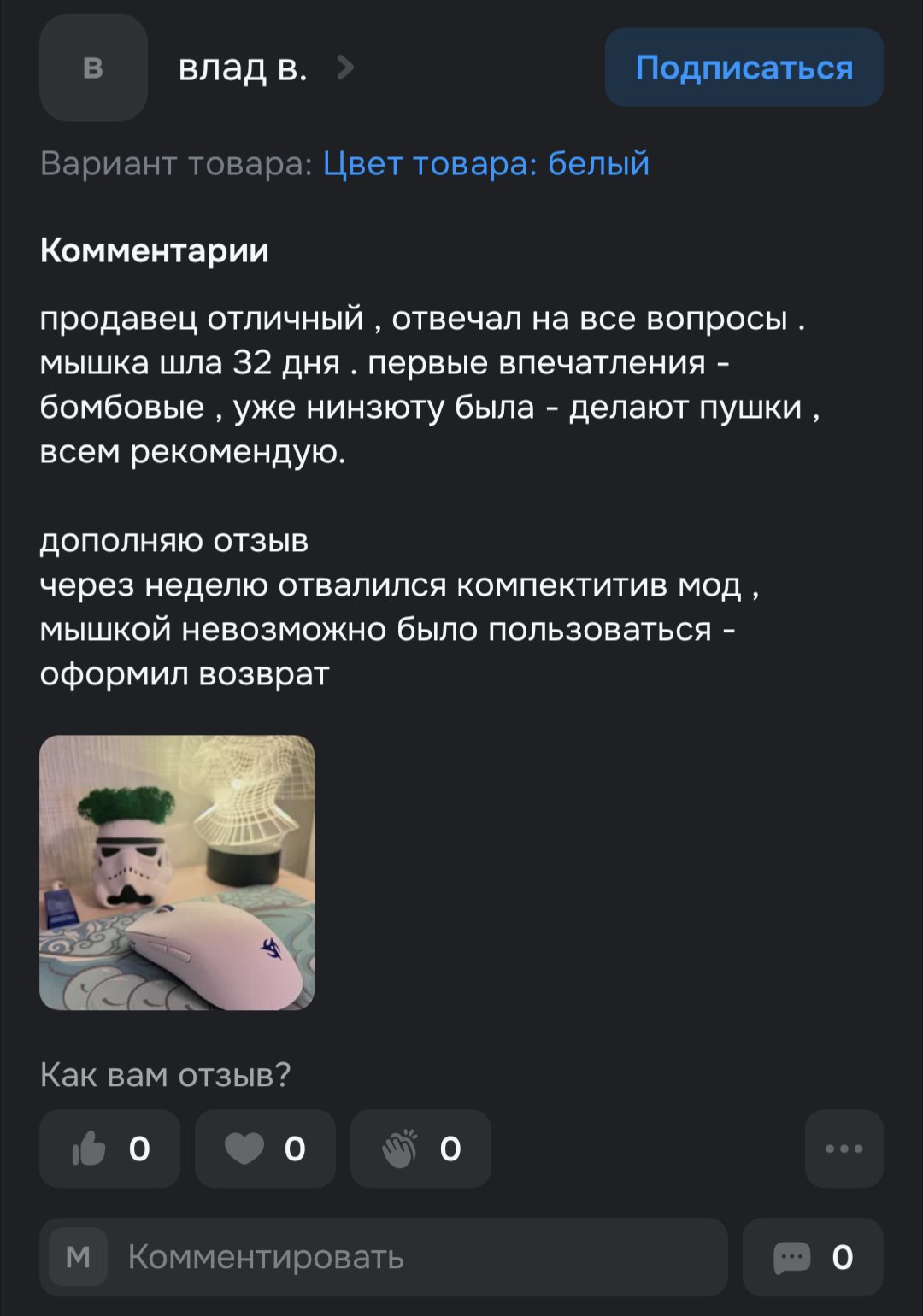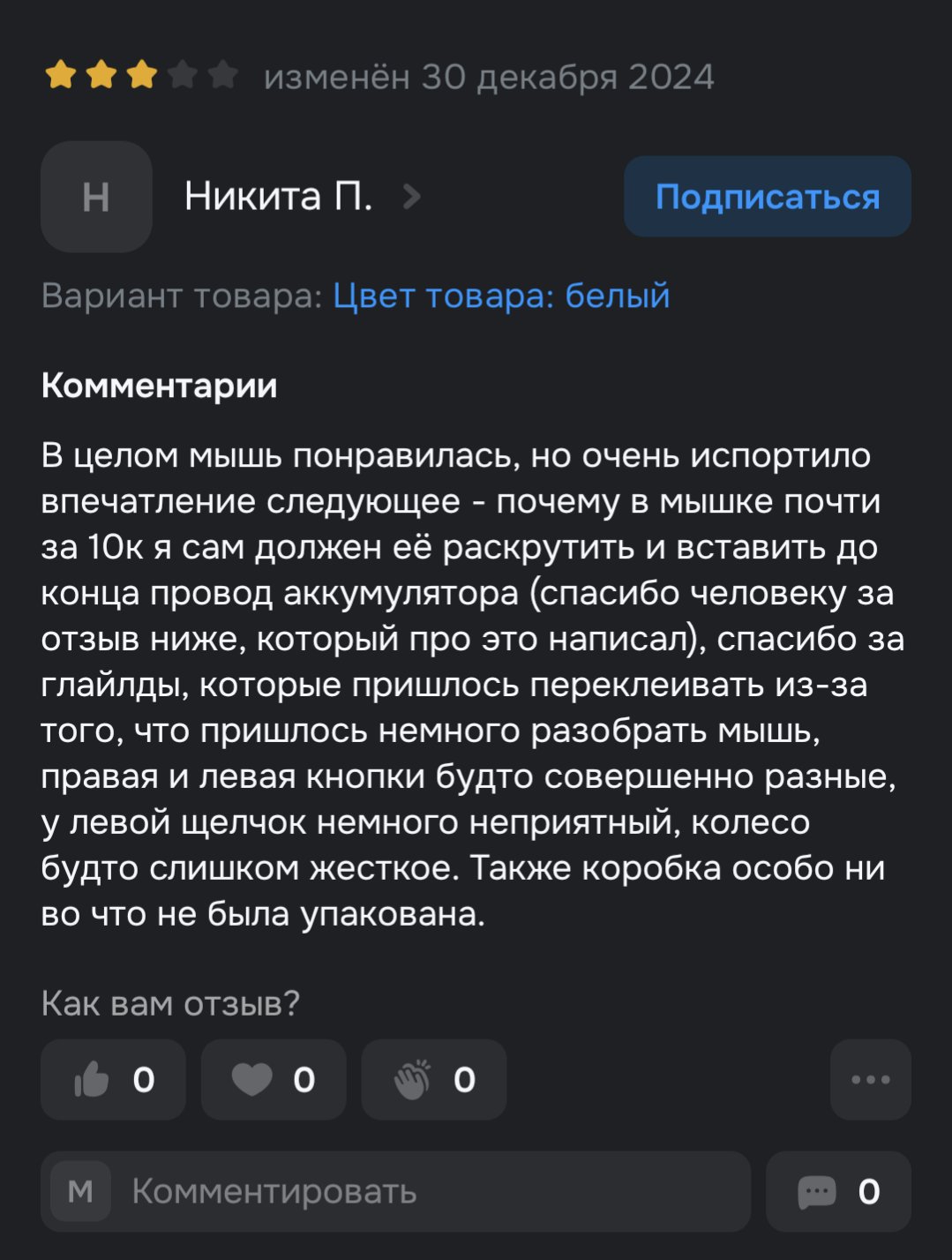 Взрослому человеку в похуй на ваши тренды, топы за свои деньги, чего там ваш кумир на ютубе рекомендует, нужна просто мышь, которая не будет ебать мозги, если она стоит дороже китайских подделок с кастрированным софтом и продается в местной рознице без ожидания и с гарантией - окей, упаковывайте, переживу я твою детскую истерику