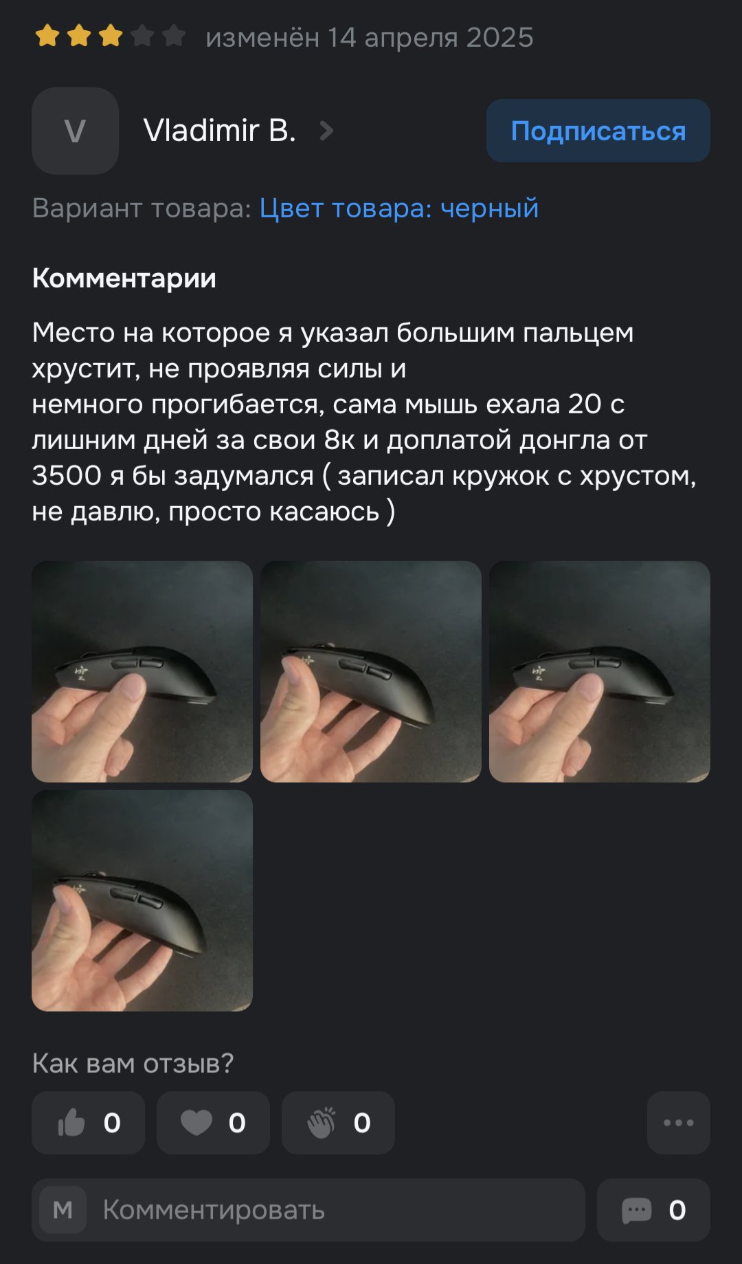 >подвальный кал от наёберов из разер, которые не умеют делать мыши, только накручивают ценник База, райзер и логитек буквально та самая параша которую берут любители брендованного подвала за подороже.