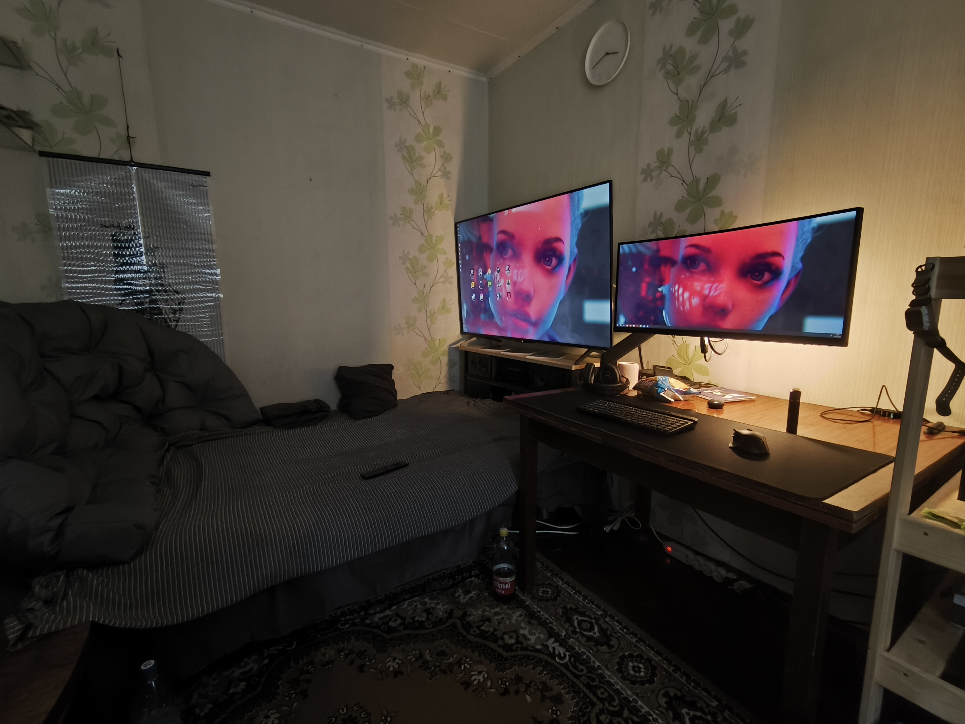 >>7456072 У тебя ноги-то в эту парту влезают? Ебать там места нету между тумб. Купи кронштейны типа nb f80, второй моник, коврик 900х400 Я бы стол поменял нахуй, срань же неудобная