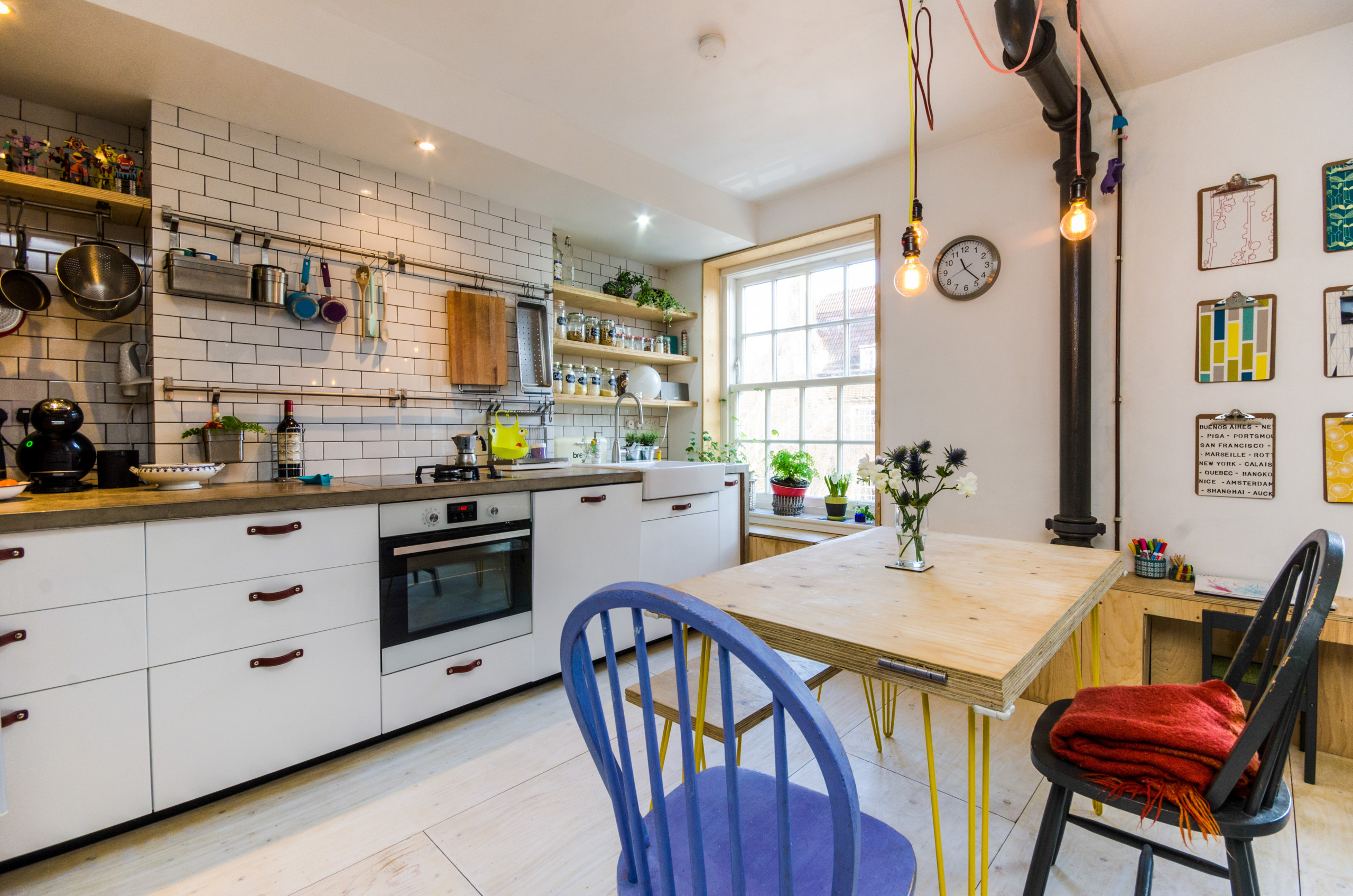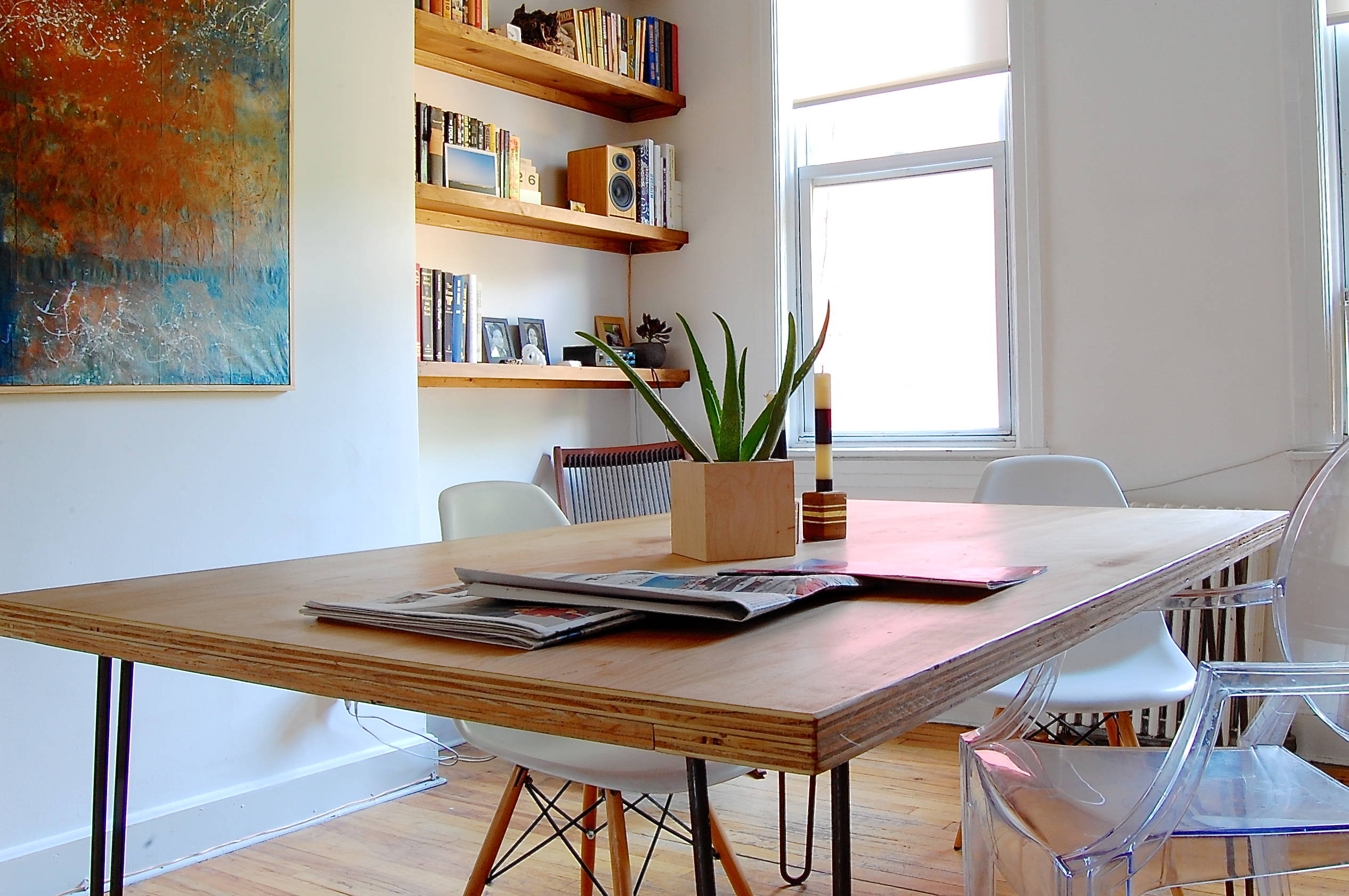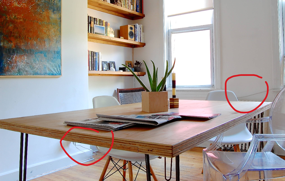 Бюджет — 50 000 рублей на всё. Единственное, что не в силах и не хочу менять — сам побитый стол (в любом случае планирую его отреставрировать).