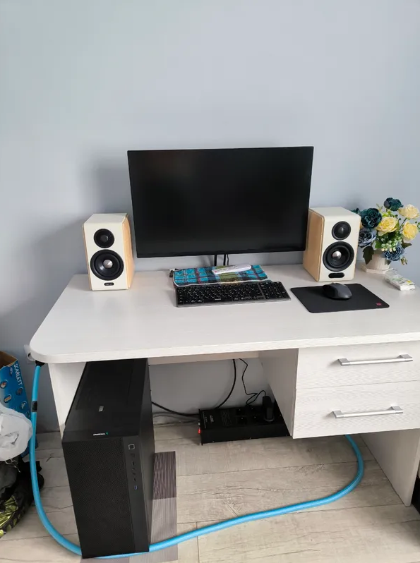 >>7456072 Лампа нормальная и сочетается со столом. Её менять не надо. Колонка не сочетается со столом и лампой. Её менять надо. На клавиатуре и мышке выключаем подсветки и всё нормально. Для принтера покупается стеллаж-перегородка + служит зонированием зоны. Либо полку. Остальную мелочь тоже на стеллаж или полку. Обои светло-серые без рисунка или ближе к тёмному зелёные. зелёные можно с каким-то интересным рисунком.